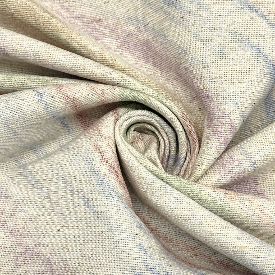 細い糸で織り上げた軽やかで柔らかな生地に、虹のようなカラフルな模様が映える魅力的な生地です。