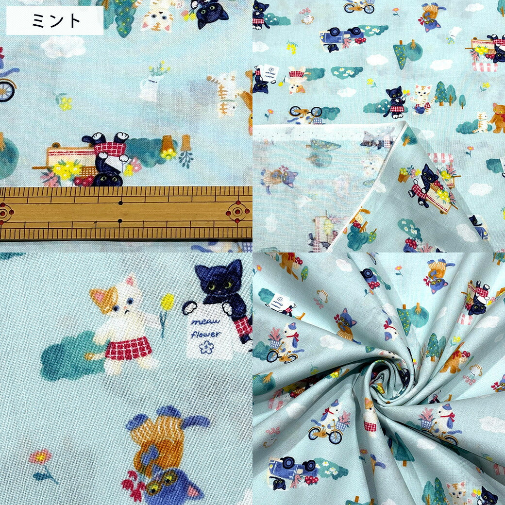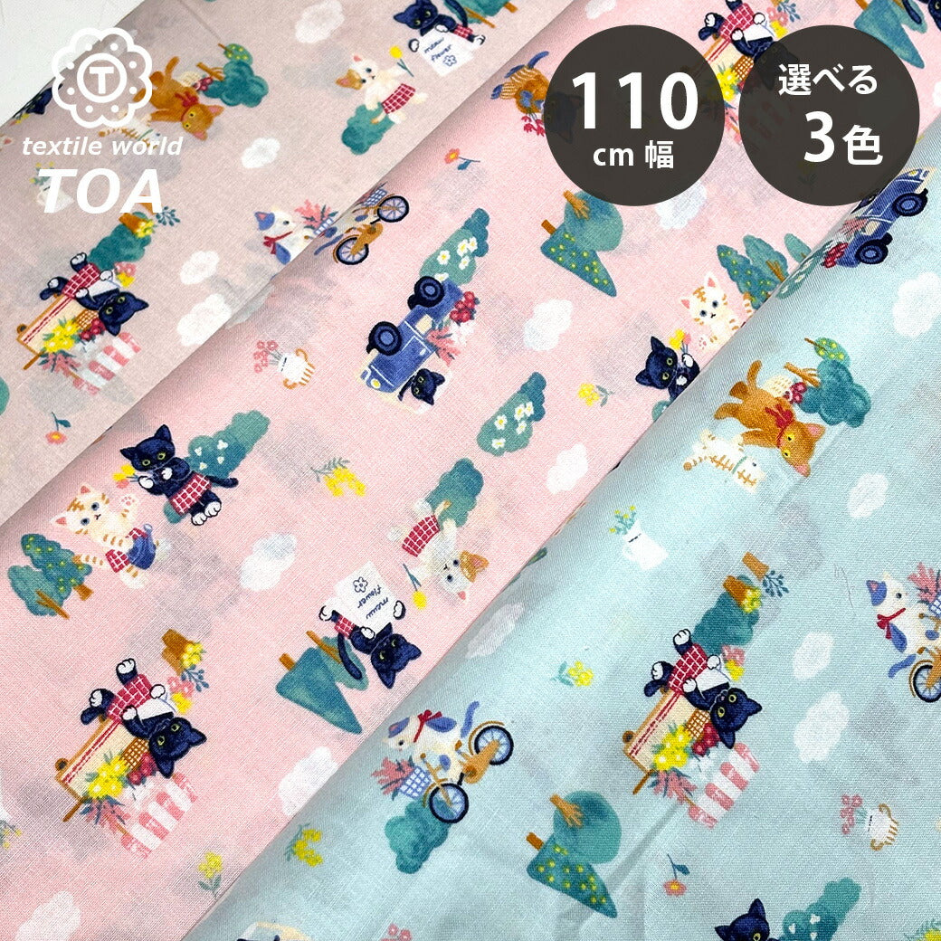 生地 【 にゃんこのお便り 3色 】 シーチング生地 猫柄 110cm巾 綿100% コットン 薄手 バッグ ポーチ クッションカバー エプロン レッスンバック 巾着 ランチョンマット インテリア雑貨 ハンドメイド 手芸 入園 入学 新学期準備 Textile World TOA
