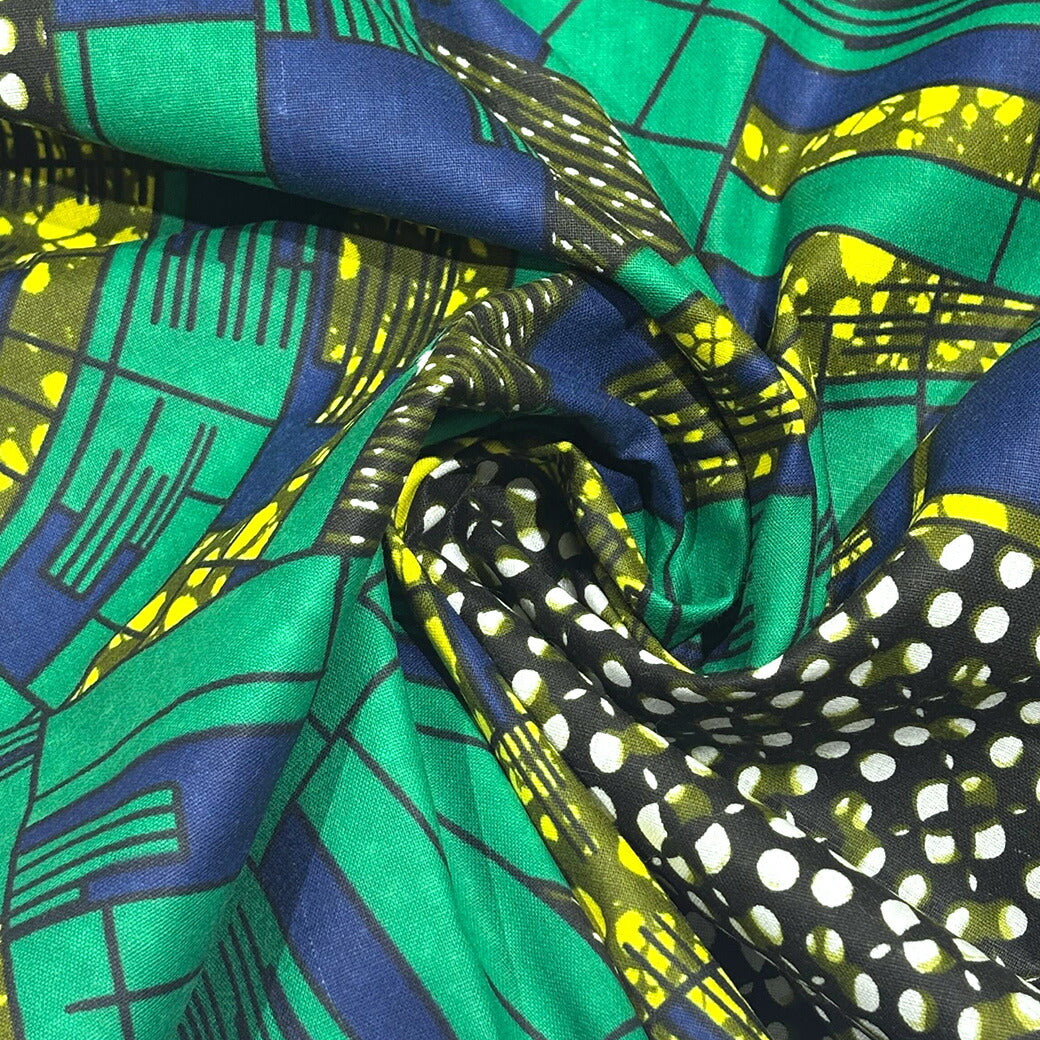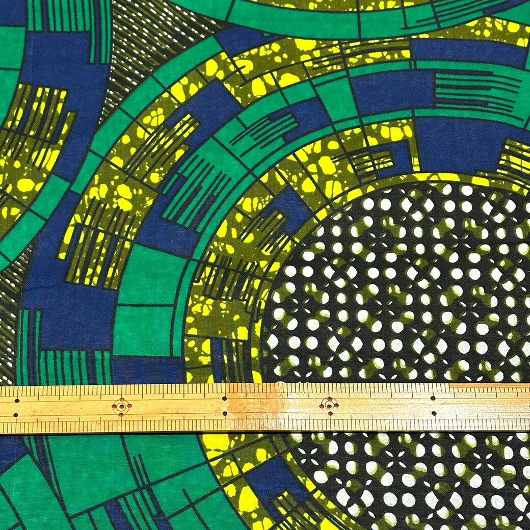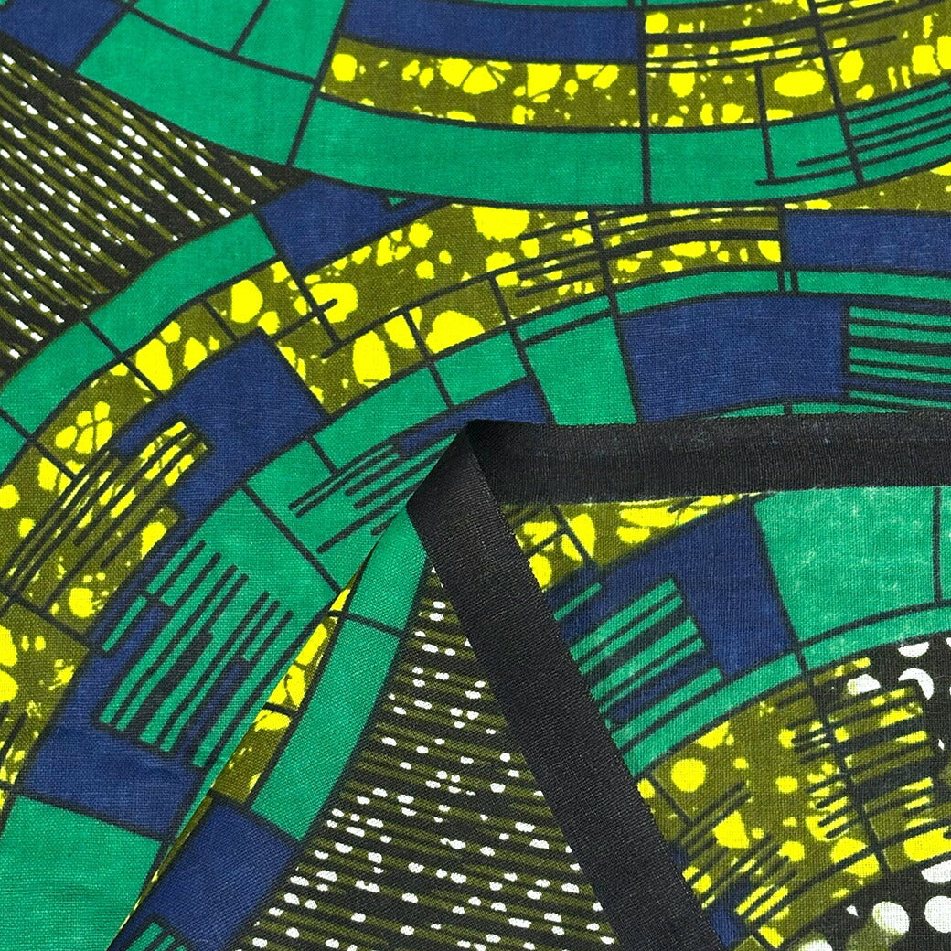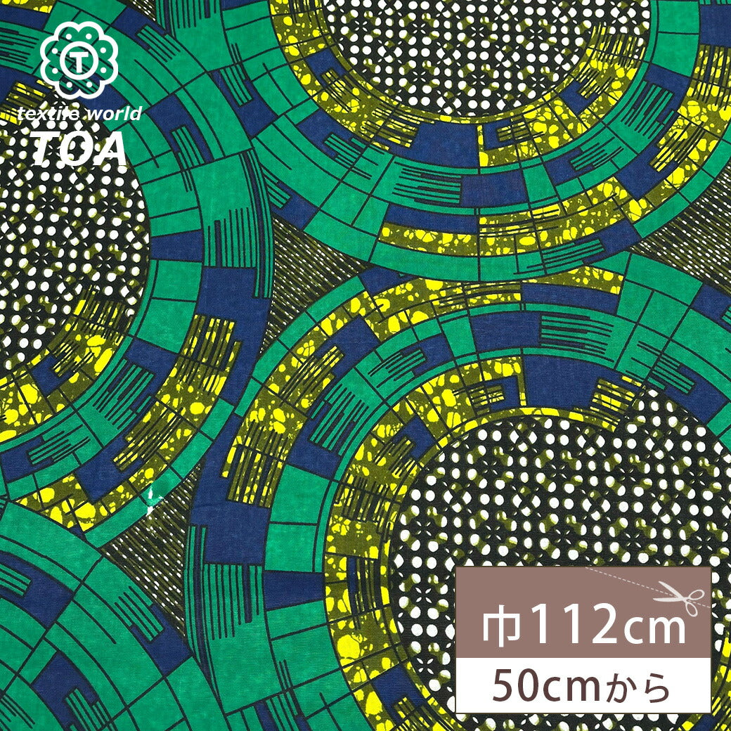 生地 【 アフリカンプリント 緑黄 】アフリカンファブリック ワックスプリント 112cm巾 綿100%