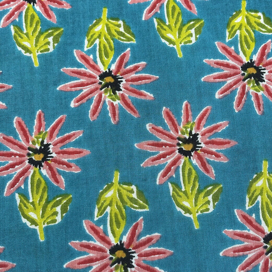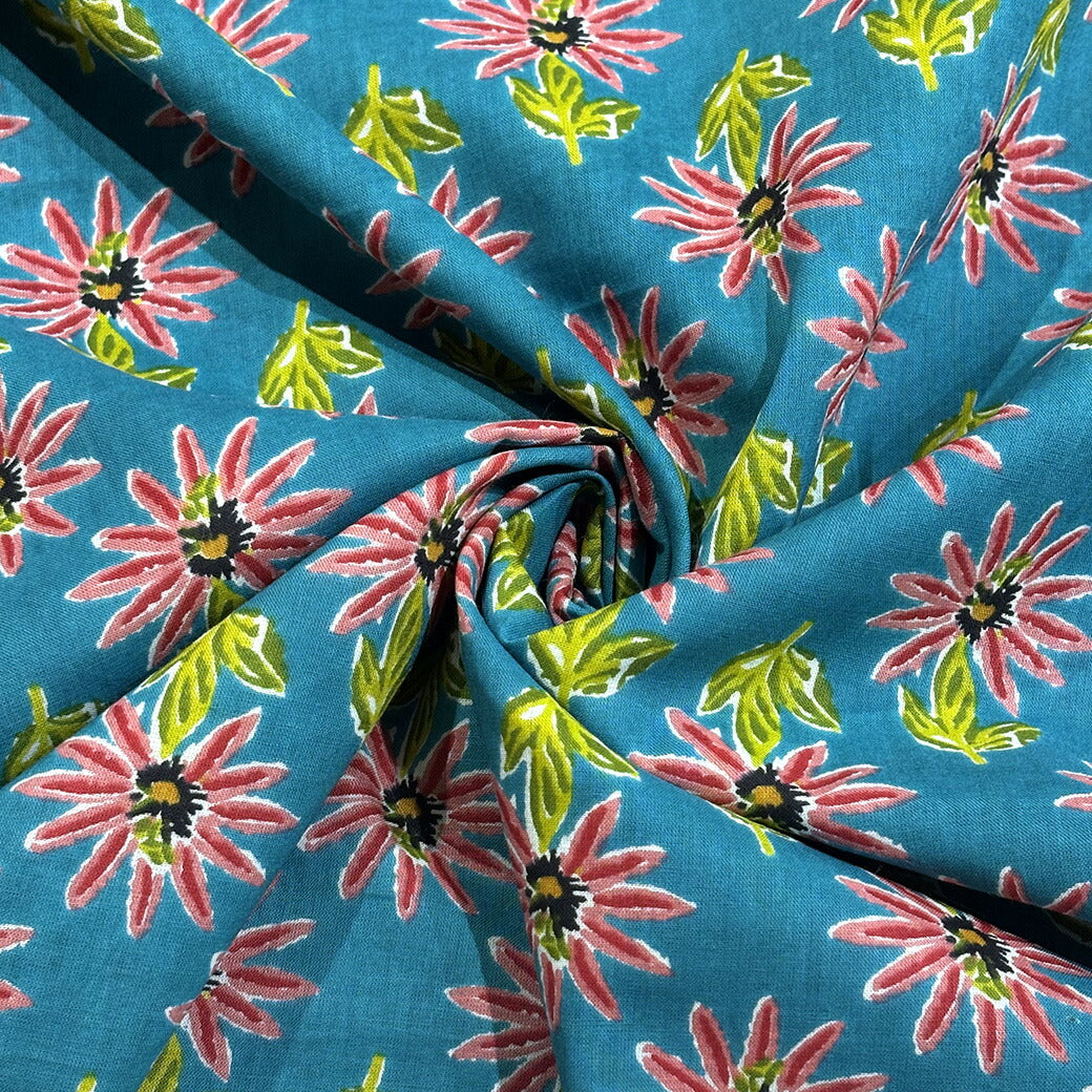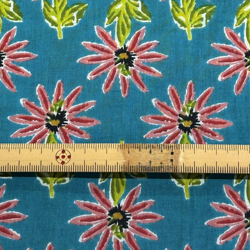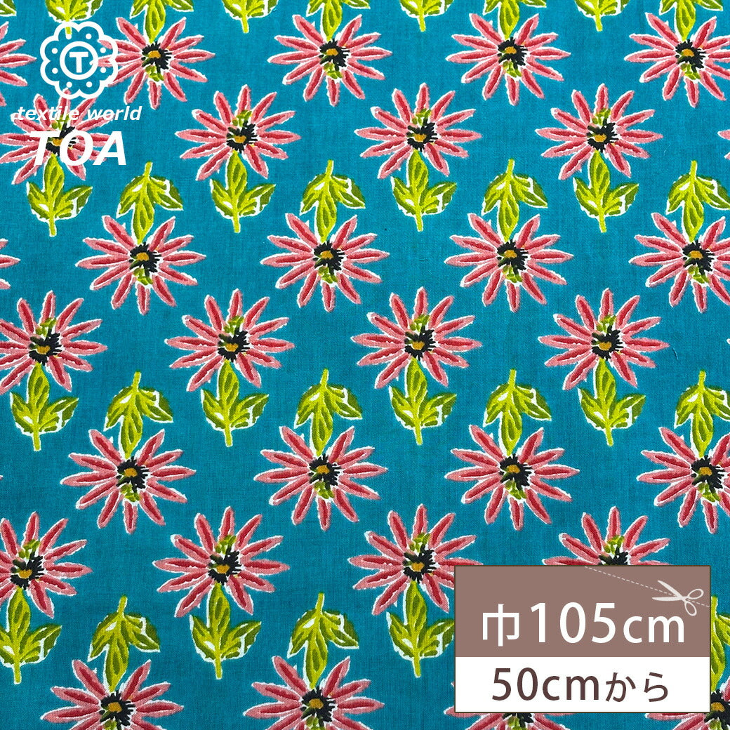 生地 【 インド綿 手描きプリント ブルー 】 インド綿 薄手 ボイル 105cm巾 ハンドプリント ハンドブロックプリント ブロックプリント コットン 綿100% エスニック 花柄 ブラウス チュニック ワンピース スカート カーテン インテリア 手芸 ハンドメイド Textile World TOA