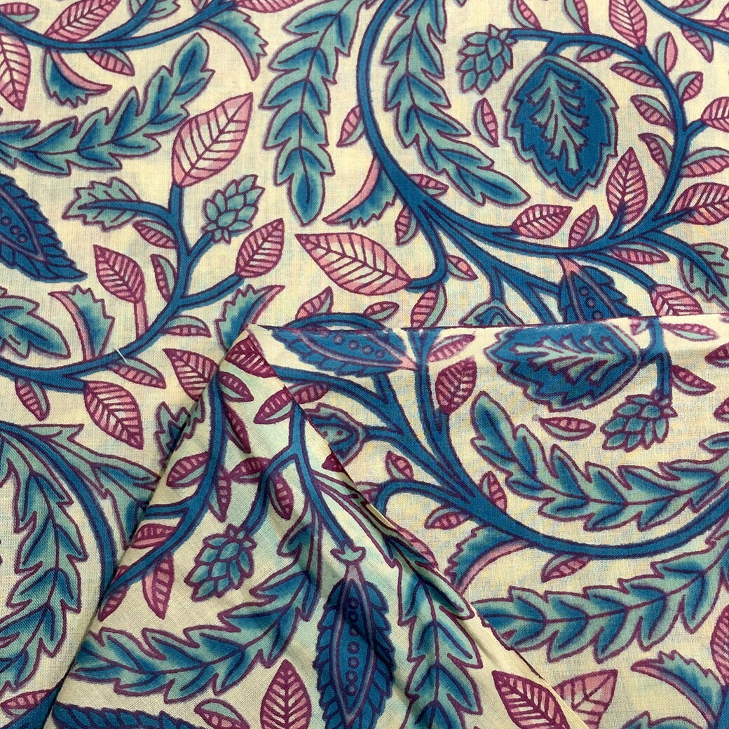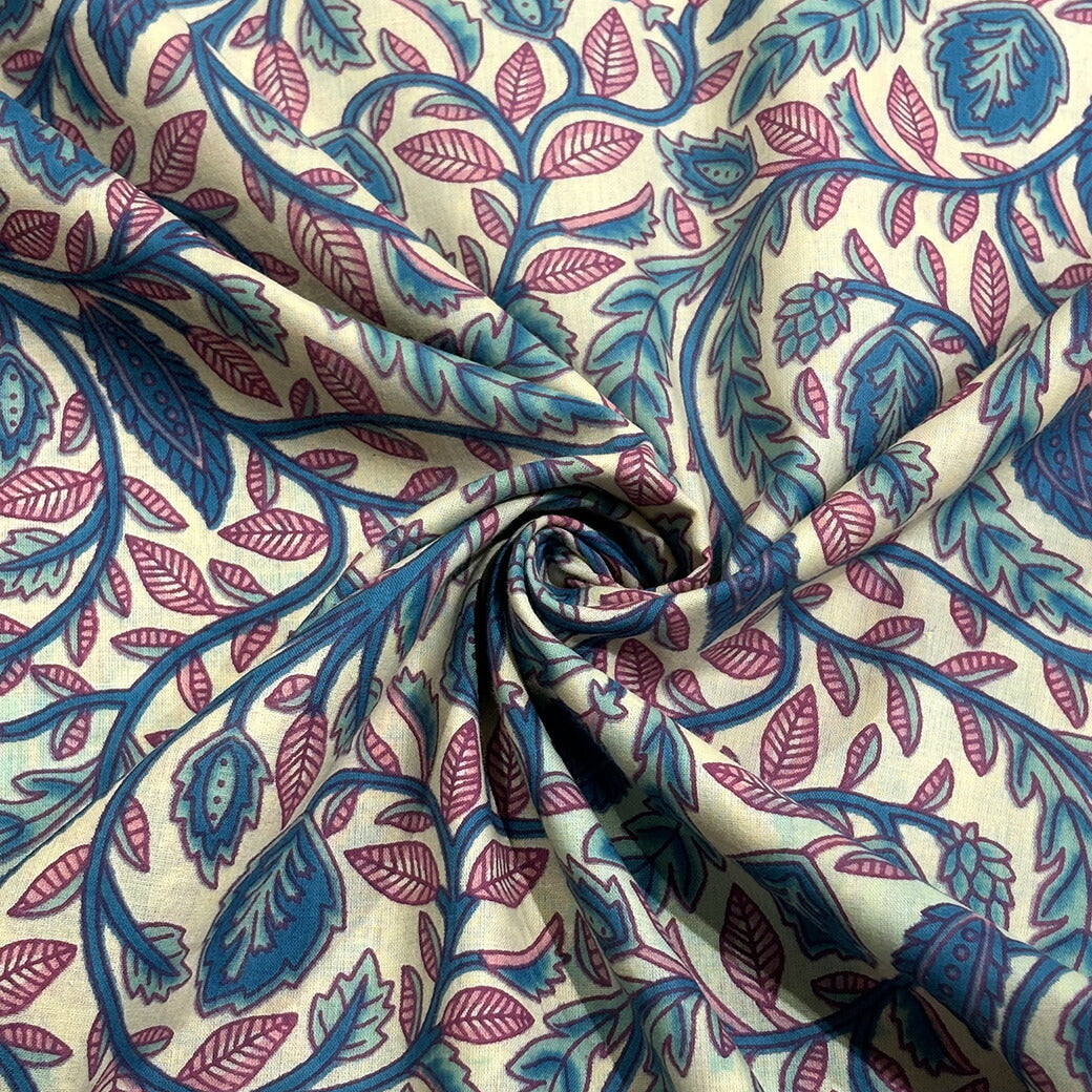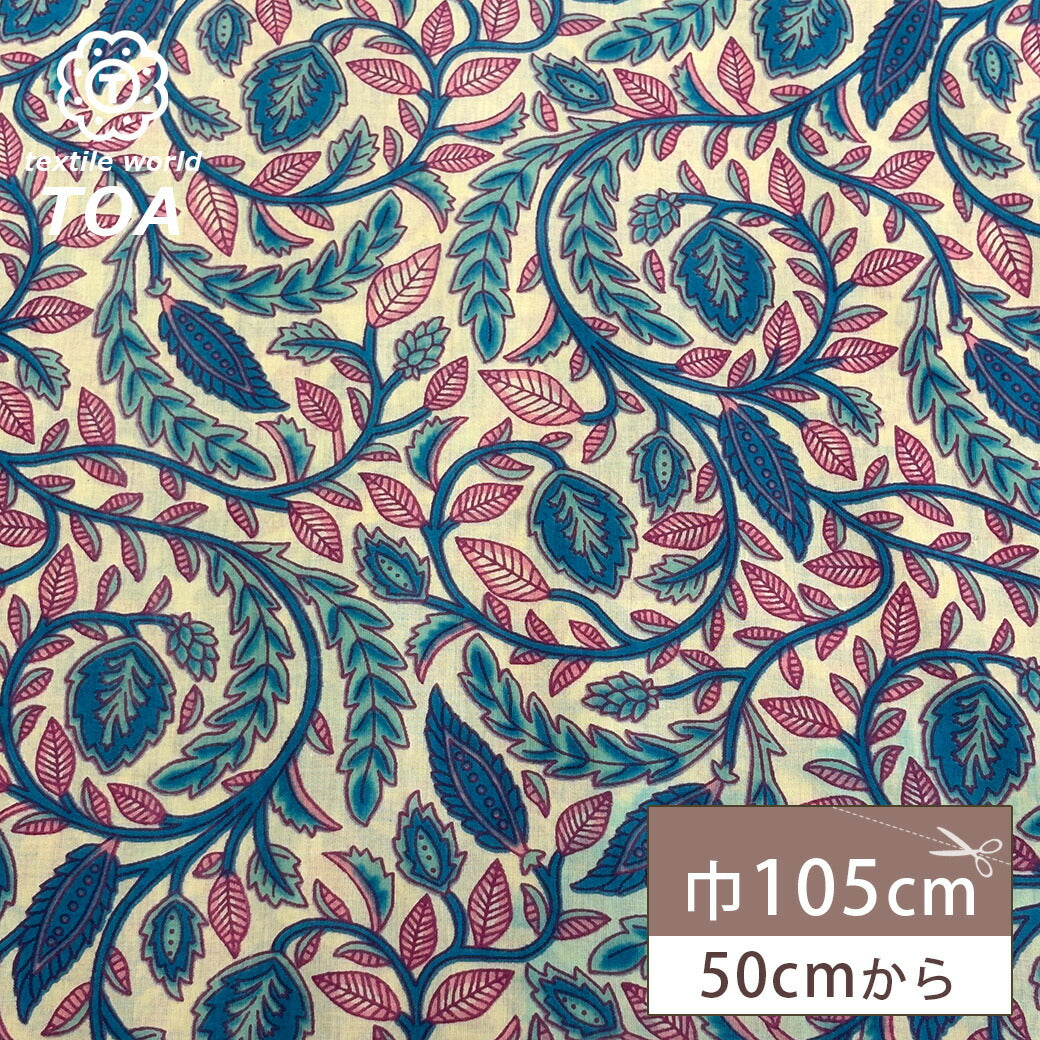 生地 【 インド綿 手描きプリント 生成 】 インド綿 薄手 ボイル 105cm巾 ハンドプリント ハンドブロックプリント ブロックプリント コットン 綿100% エスニック 花柄 ブラウス チュニック ワンピース スカート カーテン インテリア 手芸 ハンドメイド Textile World TOA