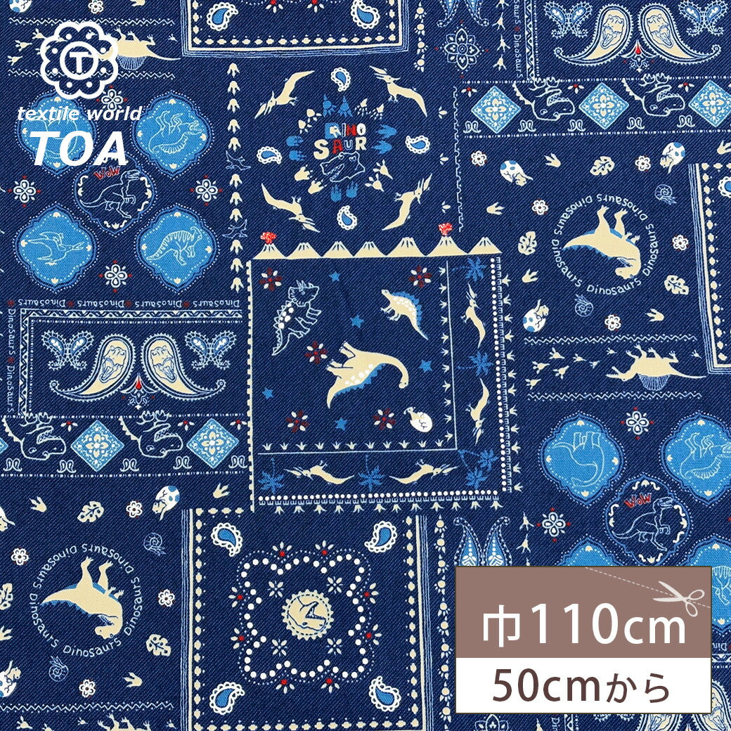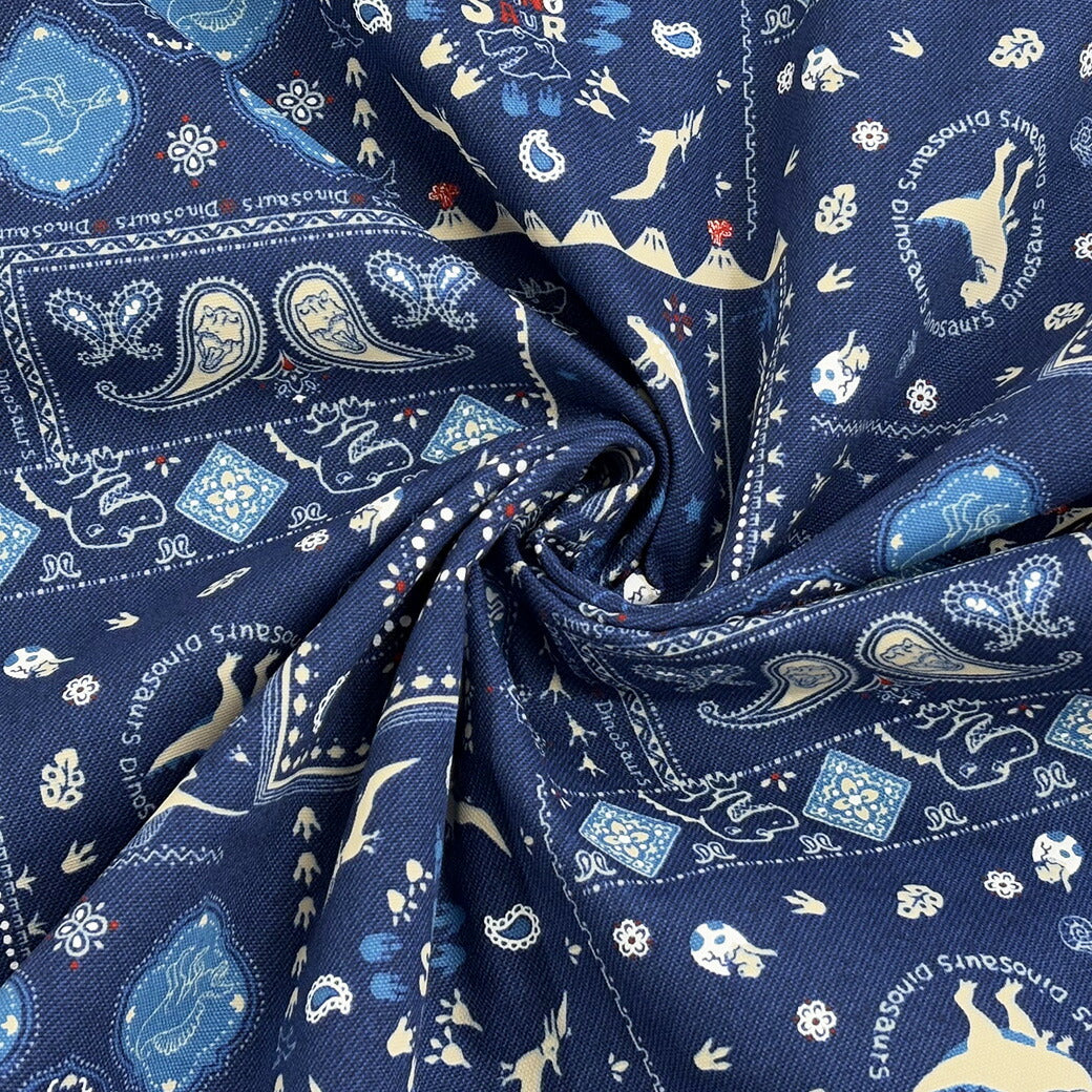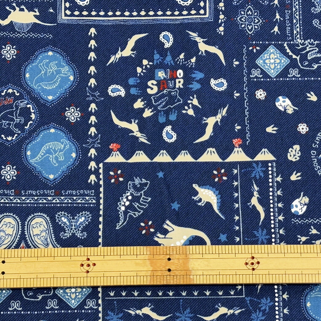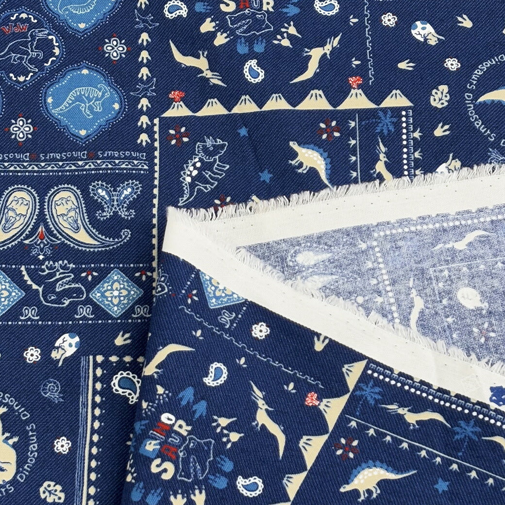 生地 【 オックス ペイズリー恐竜 ネイビー 】 オックス生地 恐竜柄 ペイズリー ペイズリー柄 バンダナプリント 綿生地 コットン オックスフォード エプロン バッグ インテリア 入園 入学 新学期準備 クッションカバー ポ