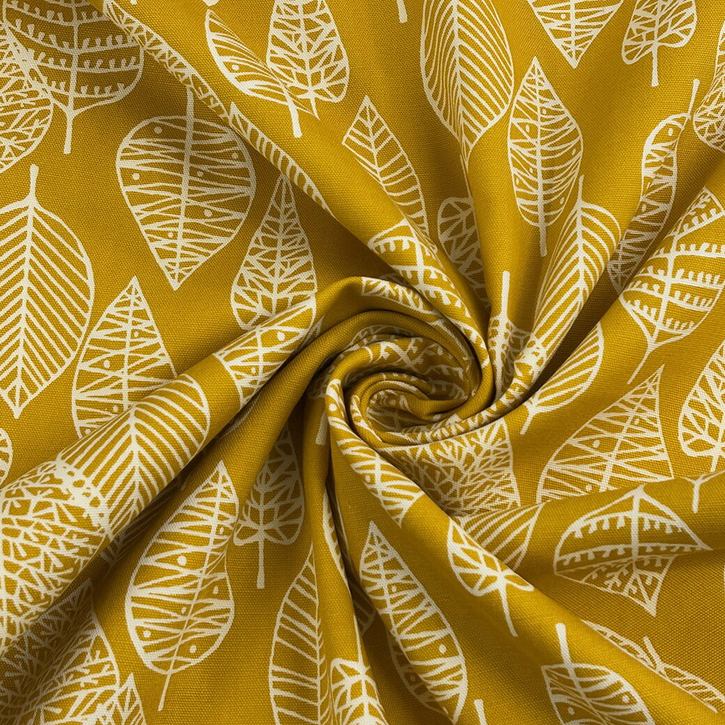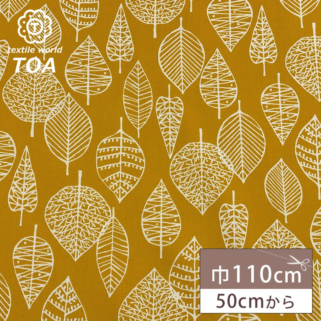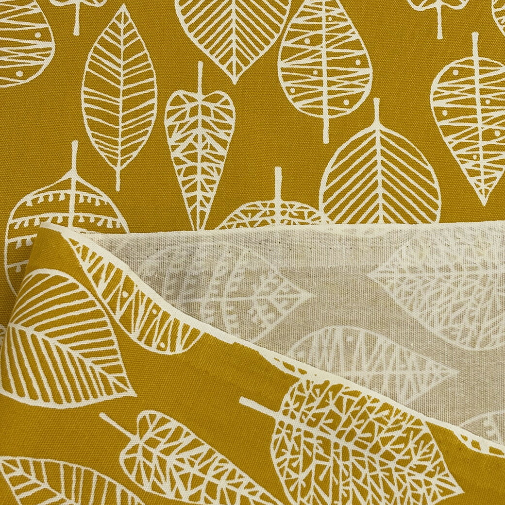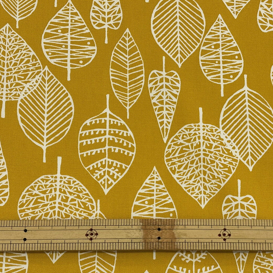 生地 【 オックス リーフPT からし 】 オックス生地 オックスフォード 110cm巾 綿生地 コットン 葉柄 植物柄 リーフ柄 葉っぱ 北欧 北欧調 エプロン バッグ インテリア クッションカバー キッチン小物 ハンドメイ