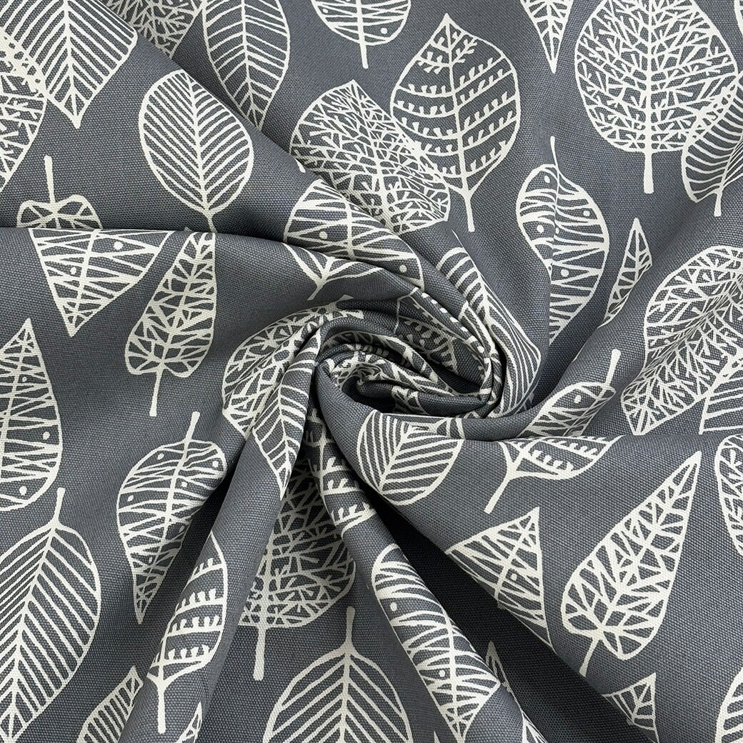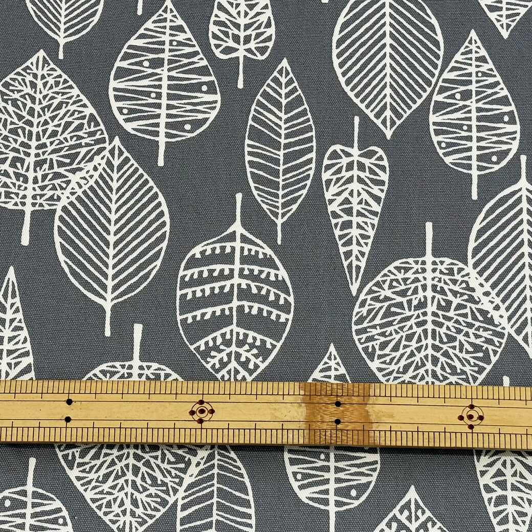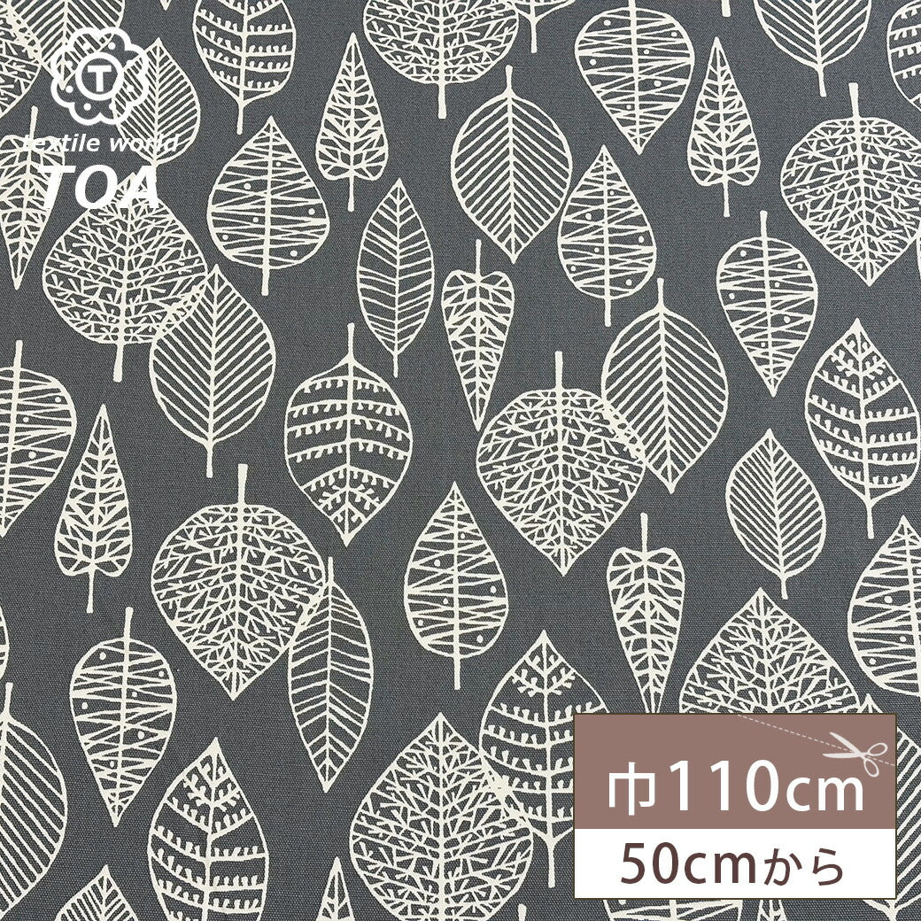 生地 【 オックス リーフPT グレー 】 オックス生地 オックスフォード 110cm巾 綿生地 コットン 葉柄 植物柄 リーフ柄 葉っぱ 北欧 北欧調 エプロン バッグ インテリア クッションカバー キッチン小物 ハンドメイ