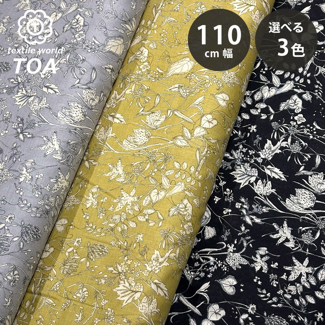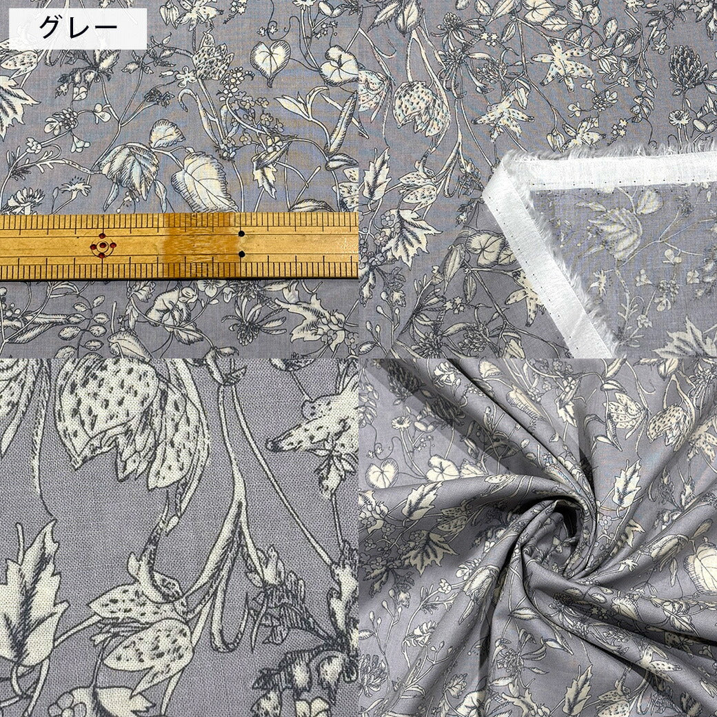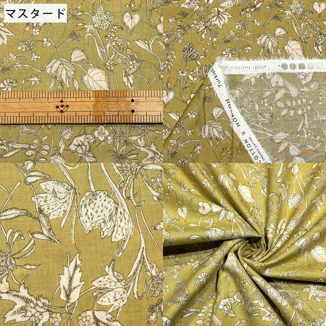 生地 【 オーガニック 60/1ローン カームフラワー 3色 】 花柄 ローン生地 綿生地 綿 コットン 綿100% 植物柄 クラシックフラワー アンティーク調 フラワープリント コットンプリント シャツ ブラウス ハンカチ カバーリング 裏地 巾着袋 エコバック Textile World TOA
