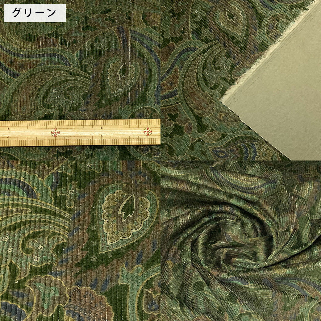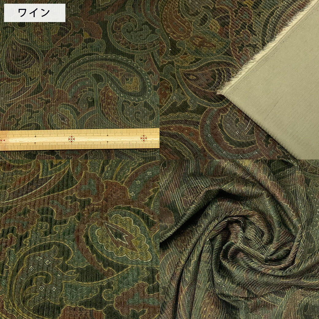 生地 【 コーデュロイプリント 4色 】 コーデュロイ生地 太畝コール天 コール天 コーディロイ バンダナ柄 ペイズリー柄 秋冬 冬生地 パンツ コーデュロイパンツ ジャケット バッグ スカート ポーチ セットアップ ヘアバン