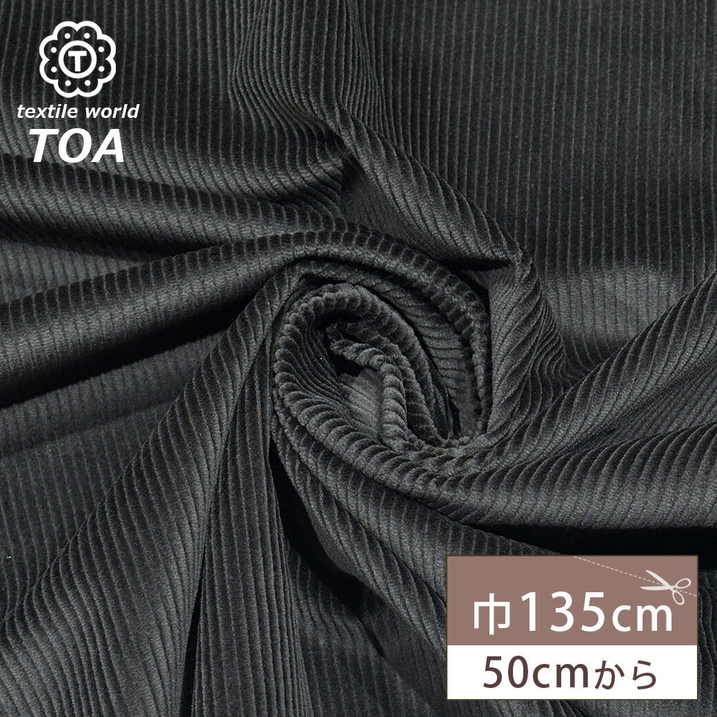 生地 【 コーデュロイ 黒 】 綿コーデュロイ 135cm巾 綿コール天 綿100% コットン 無地 秋冬 シャツ パンツ コーデュロイパンツ ジャケット バッグ 帽子 オーバーオール スカート セットアップ ヘアバンド クッションカバー インテリア Textile World TOA