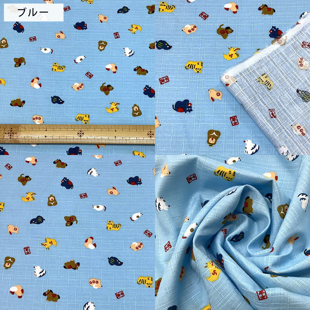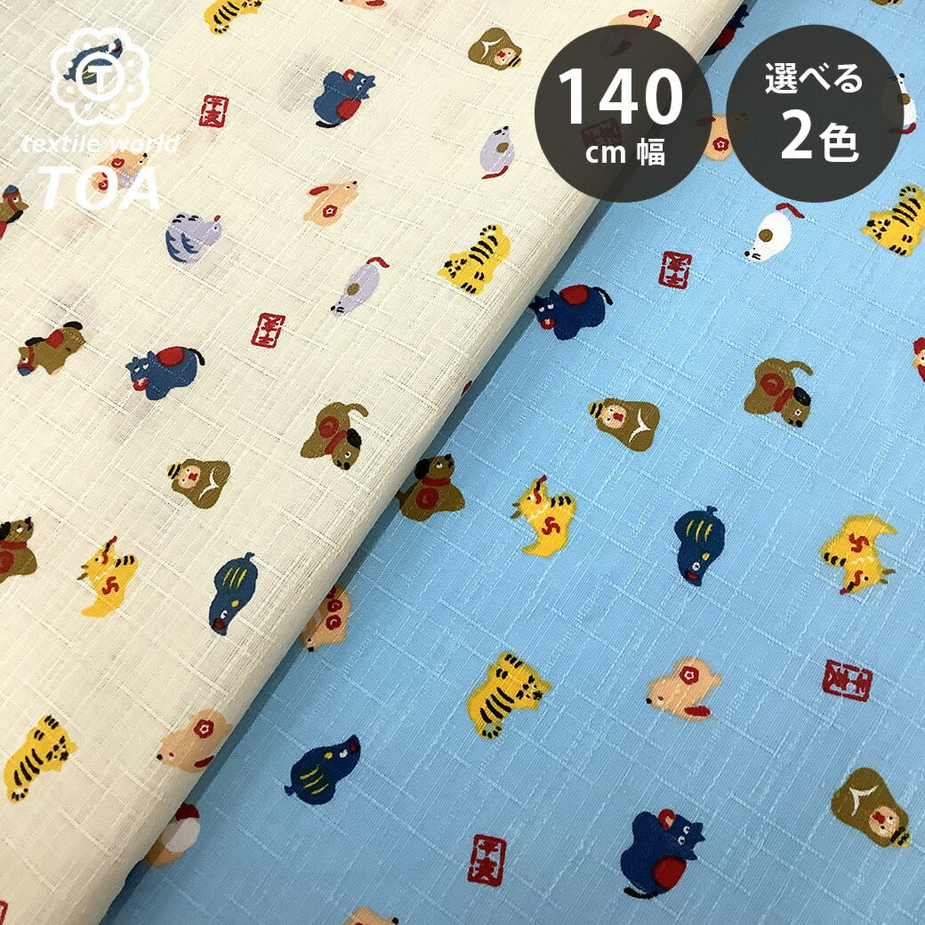 生地 【 サザンクロス干支プリント 2色 】 干支 十二支 総柄 和柄 プリント 動物 アニマル柄 サザンクロス生地 綿生地 綿 コットン 風呂敷 エプロン がま口 バッグ ポーチ 小物 ステテコ 浴衣 甚平 シャツ 暖簾 のれん 座布団 インテリア ハンドメイド Textile World TOA