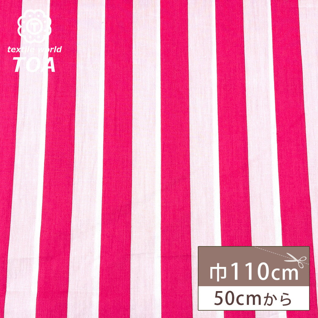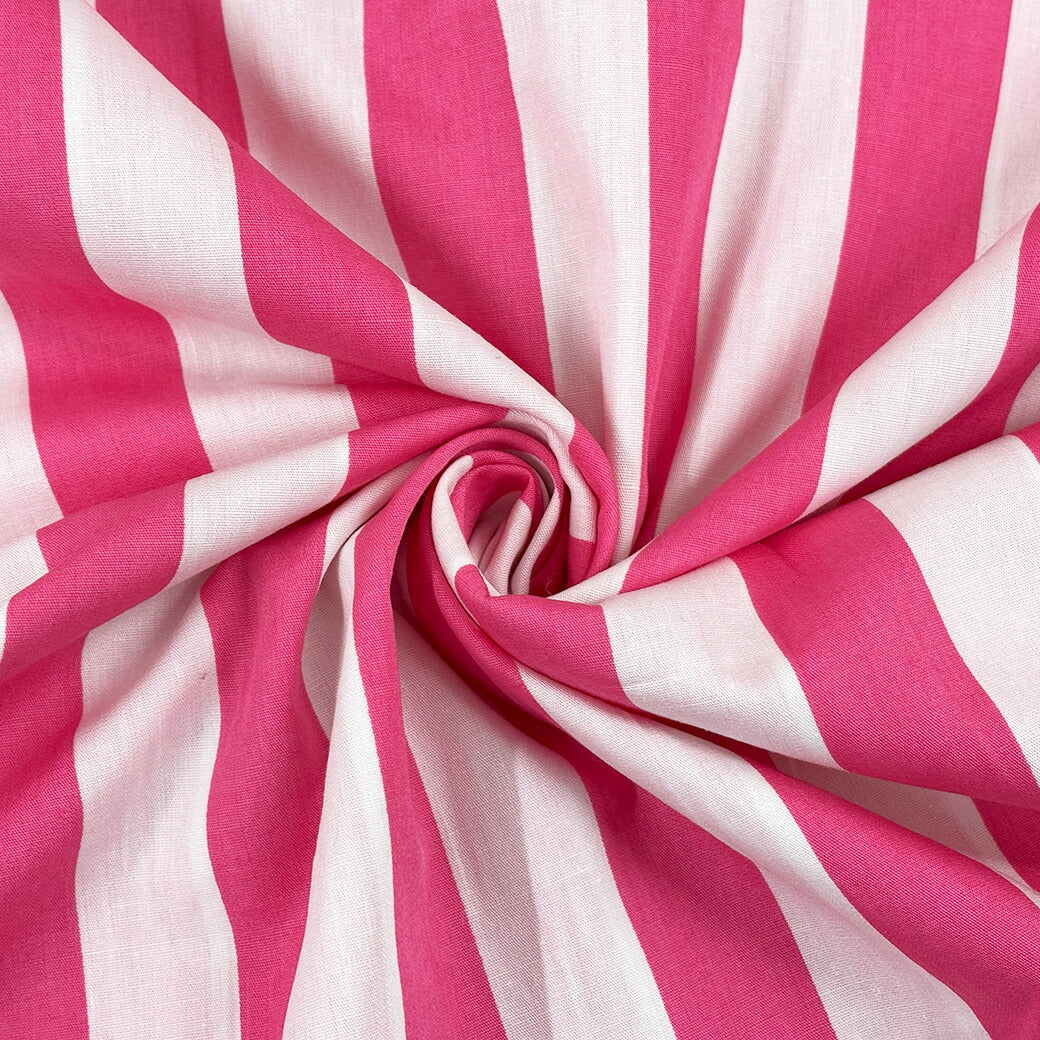 生地 【 ストライププリント ピンク 】 綿プリント ストライプ ボーダー 縞縞 ボーダー生地 しましま 綿生地 コットン エプロン テーブルクロス スカート トップス カーテン ブラウス シャツ インテリア クッションカバー