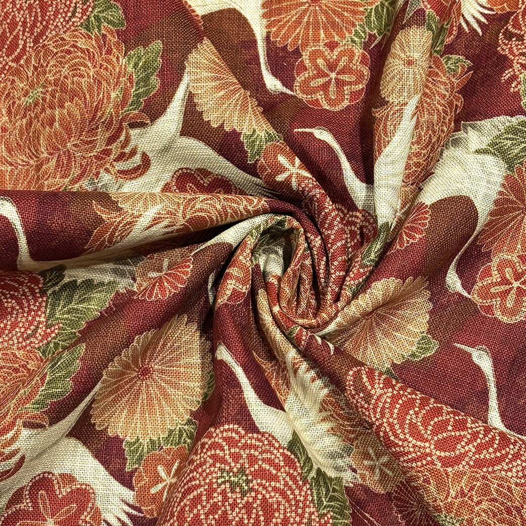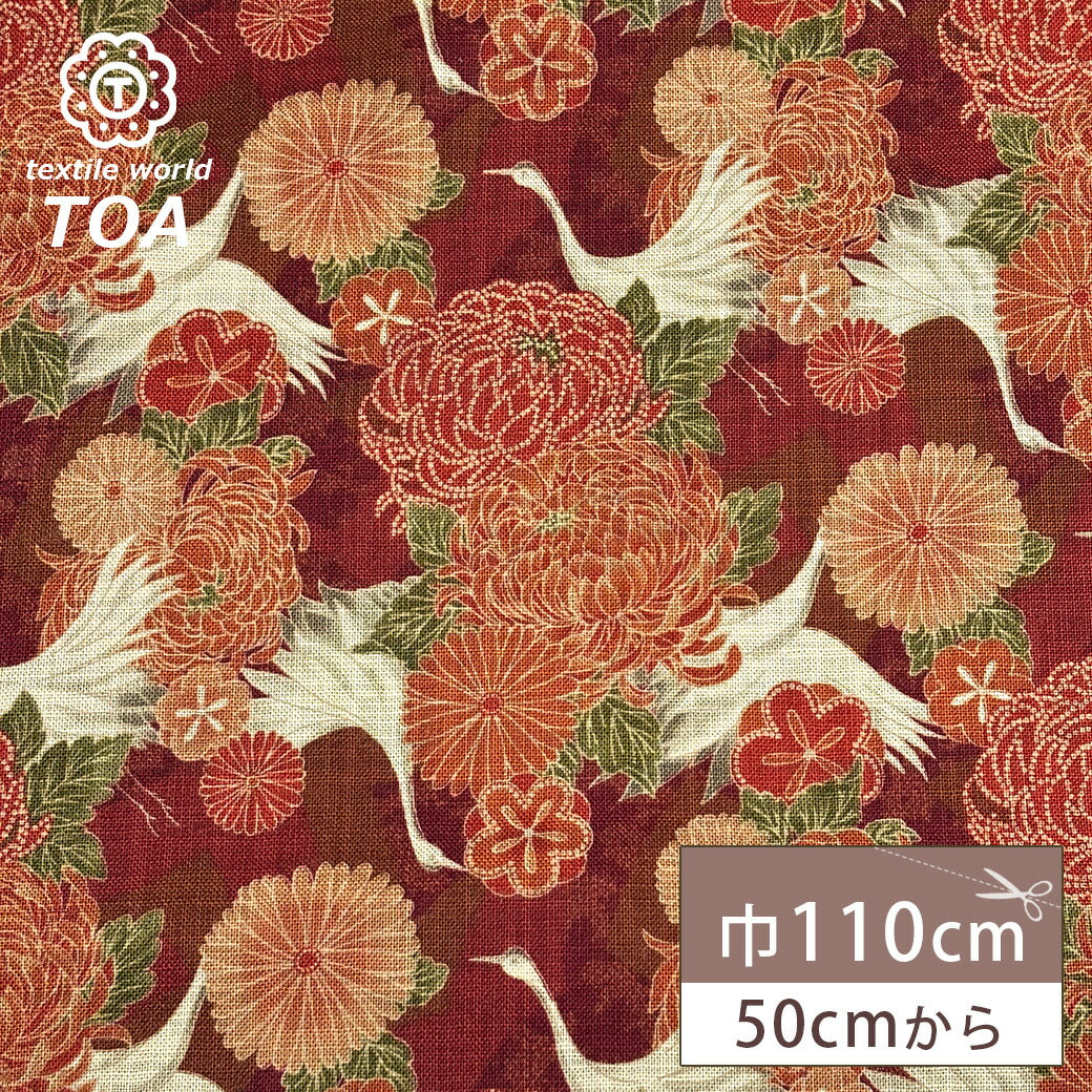 生地 【 ドビー織 鶴&菊 】 ドビー サザンクロス 110cm巾 綿 コットン100% 浴衣生地 ゆかた 甚平 着物 和柄 鶴菊 風呂敷 パジャマ シャツ ワンピース 夏生地 子ども服 女の子 男の子 可愛い ハンドメイド