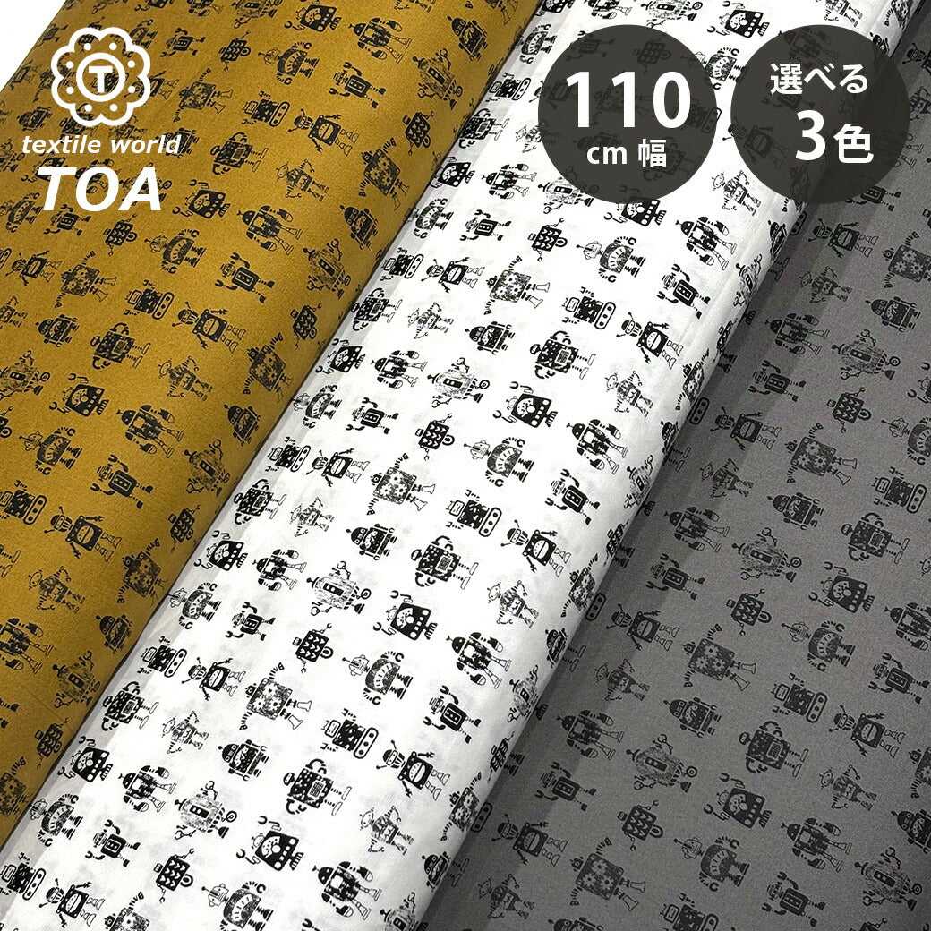 生地 【 ブロード ロボット 3色 】 ブロード生地 110cm巾 綿 コットン100% リトルロボット プリント シャツ ブラウス ワンピース スカート パンツ インテリア クッションカバー 洋服 バッグ 巾着 ランチョンマット Textile World TOA