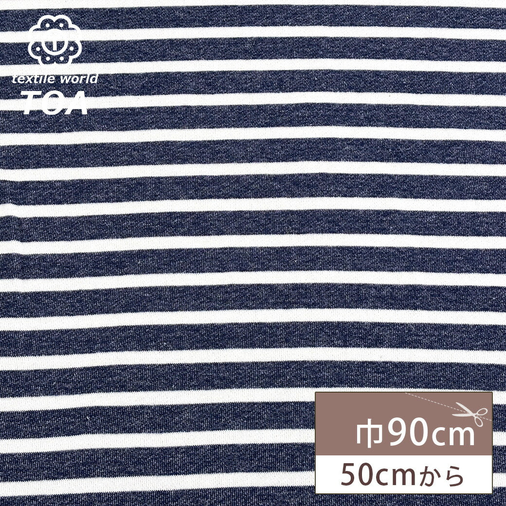 生地 【 ボーダー裏毛ニット 白ネイビー 】 スウェット生地 裏ループ 裏毛 ボーダー しましま 春生地 秋生地 冬生地 秋冬 布地 コットン100% ハンドメイド 手芸 シンプル 定番生地 トレーナー パーカー パンツ セッ