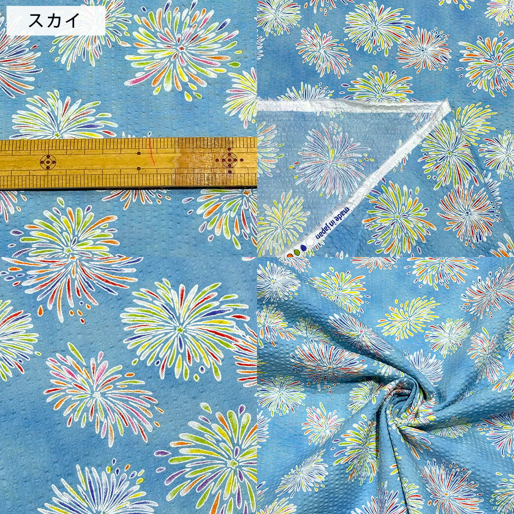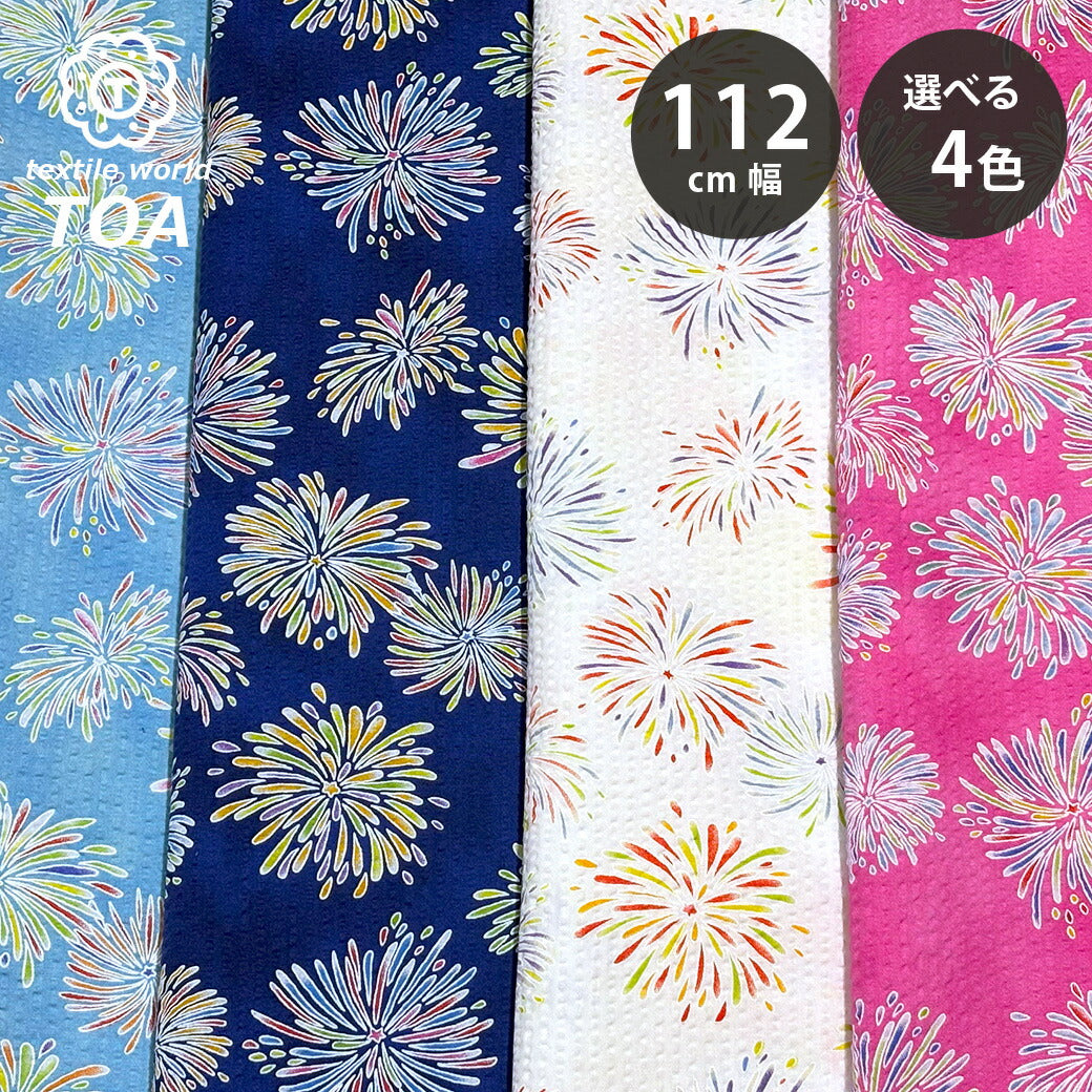 生地 【 リップル 花火 4色 】 リップル生地 浴衣生地 甚平生地 ゆかた 甚平 花火柄 fireworks 夏祭り お祭り まつり 盆踊り 夏 パジャマ ステテコ 綿生地 コットンプリント 綿プリント 夏生地 子ども服 ワンピース お祭り 女の子 男の子 可愛い Textile World TOA
