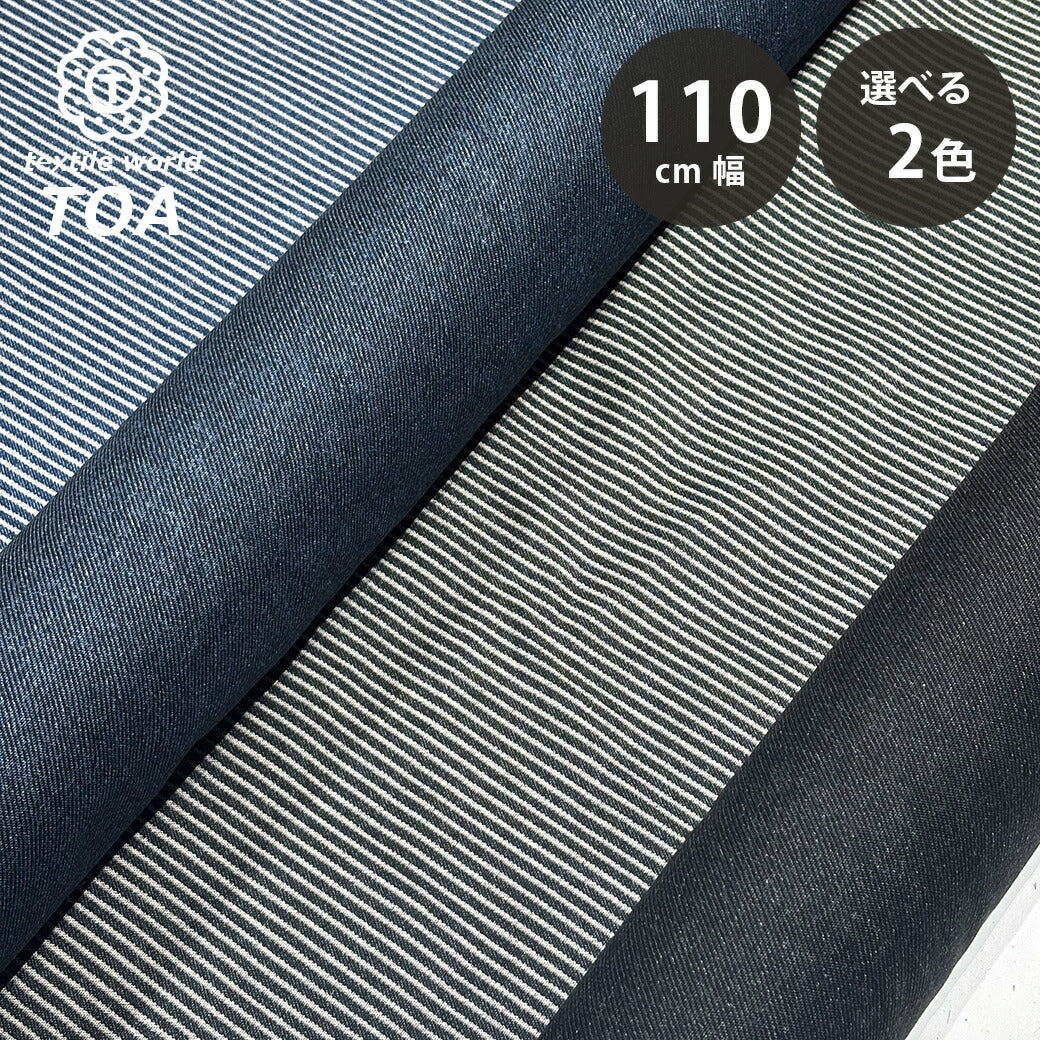 生地 【 リバーシブル デニム×ストライプ 2色 】 リバーシブル デニム生地 ストライププリント 無地 ストライプ 縞々 縞模様 ヒッコリー ヴィンテージ コットン 綿100% ジーンズ ワンピース バッグ クッションカバー ハンドメイド 手作り 手芸 Textile World TOA