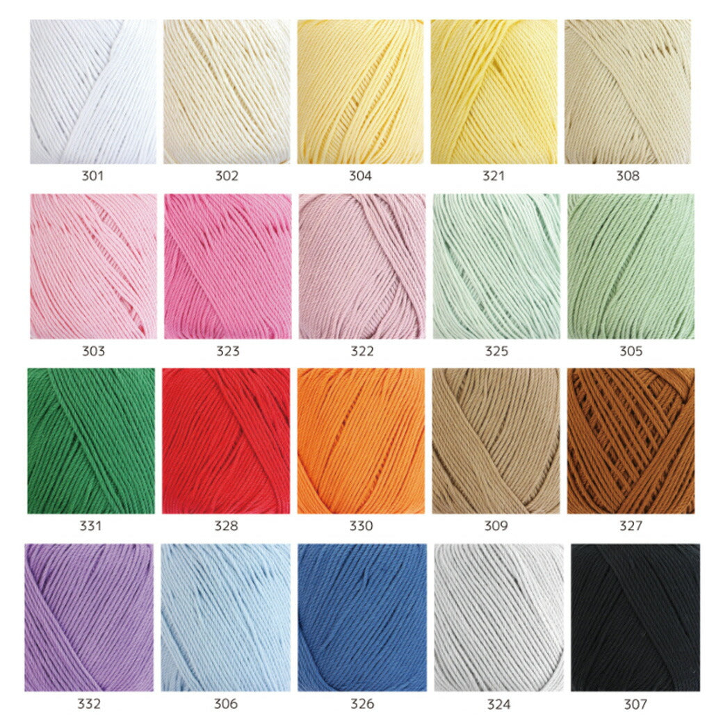 #20で編みやすく、小物からウェアまで、どんな作品にも適した糸です。