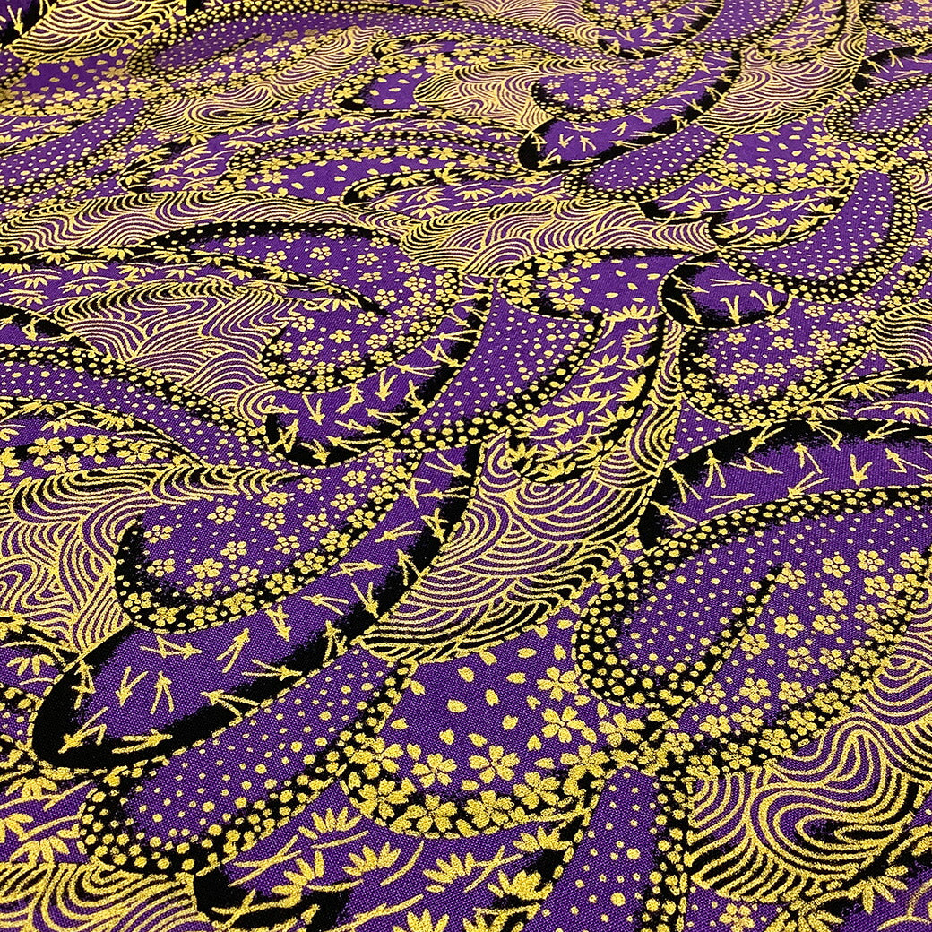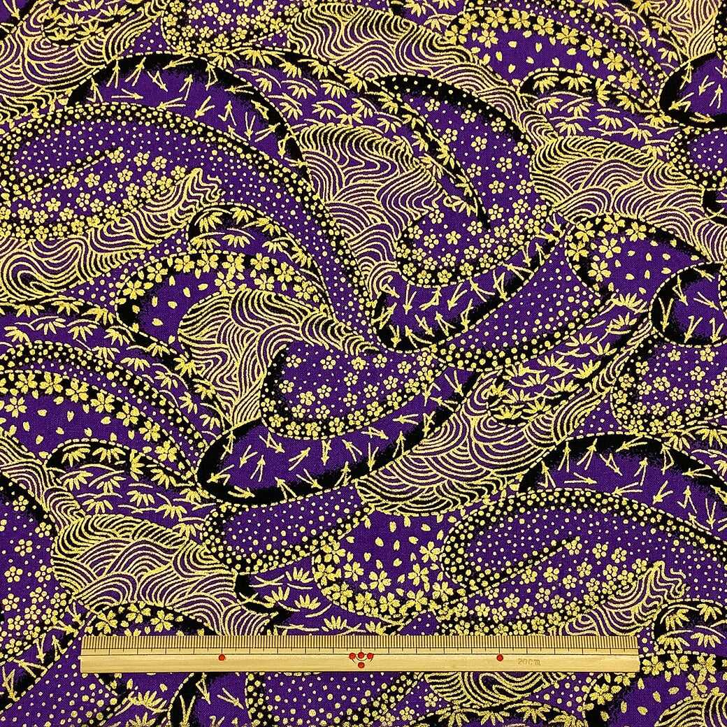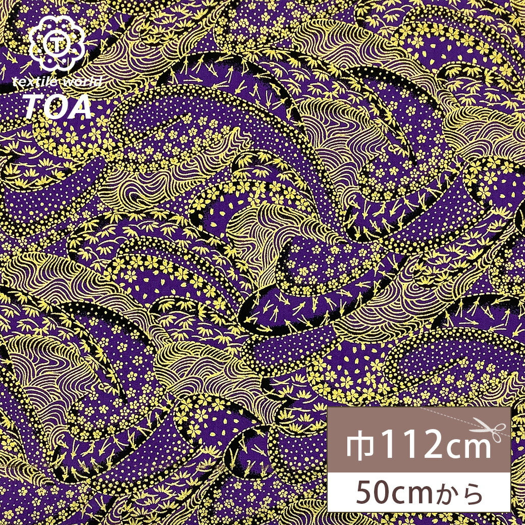 生地 【 和柄 青海波 松葉 紫 】 和柄生地 松葉ちらし 桜 波文様 浴衣生地 和風生地 112cm巾 綿100% 和装 着物 浴衣 巾着 バッグ 和装小物 髪飾り つまみ細工 衣装 婚礼 袱紗 足袋入れ パッチワーク ハンドメイド 手芸 日本製 布 布地 Textile World TOA