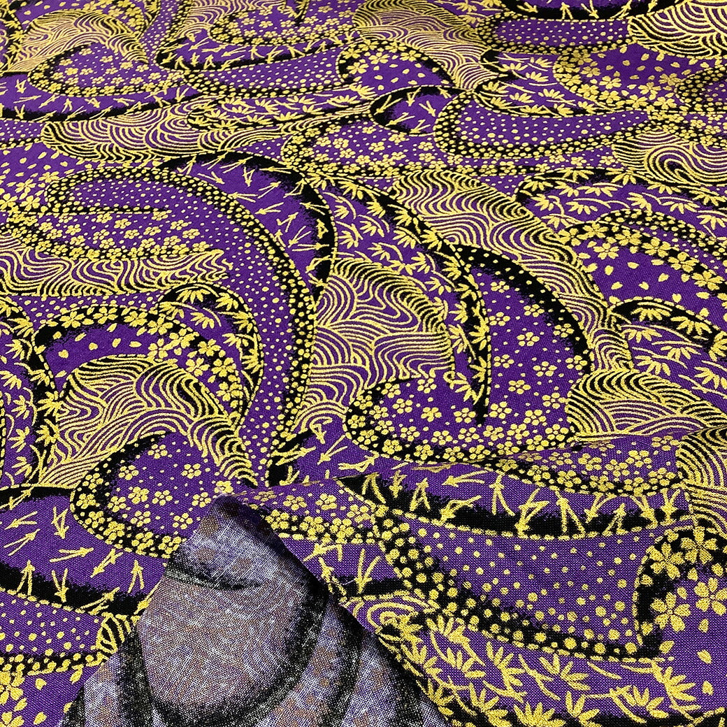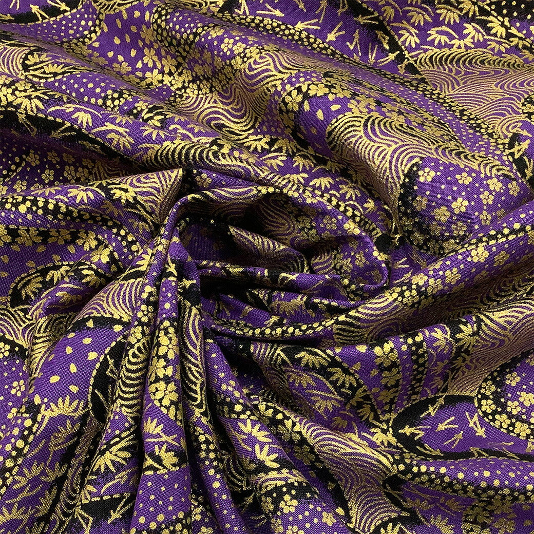 金色の和模様が上品でシックなデザインの綿生地です。