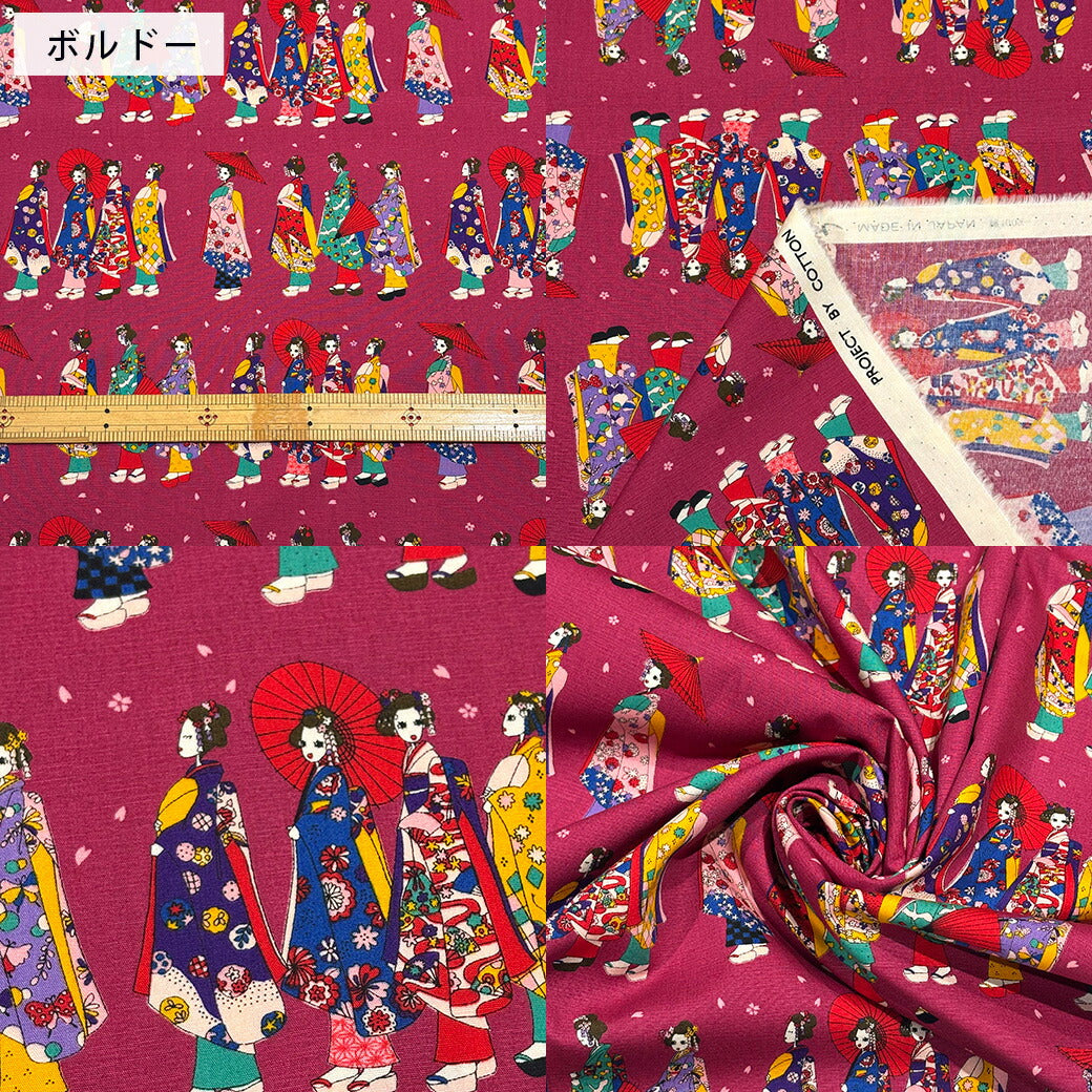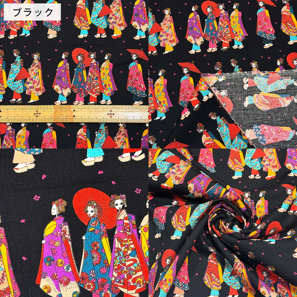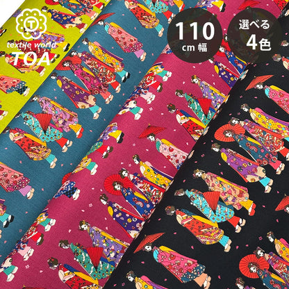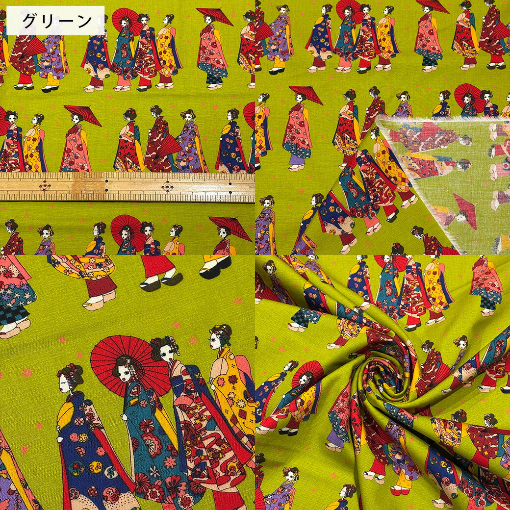 生地 【 和柄 舞妓 4色 】 ブロード コットンブロード 110cm巾 綿100%