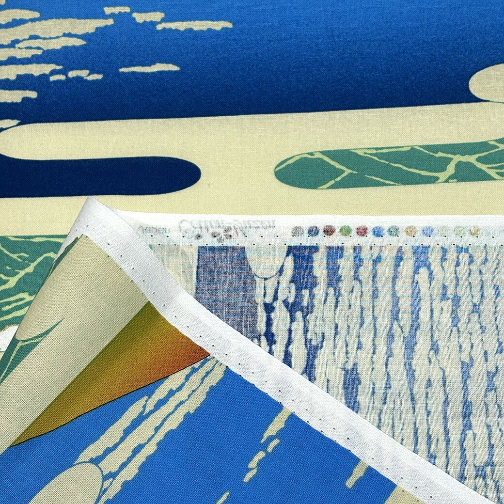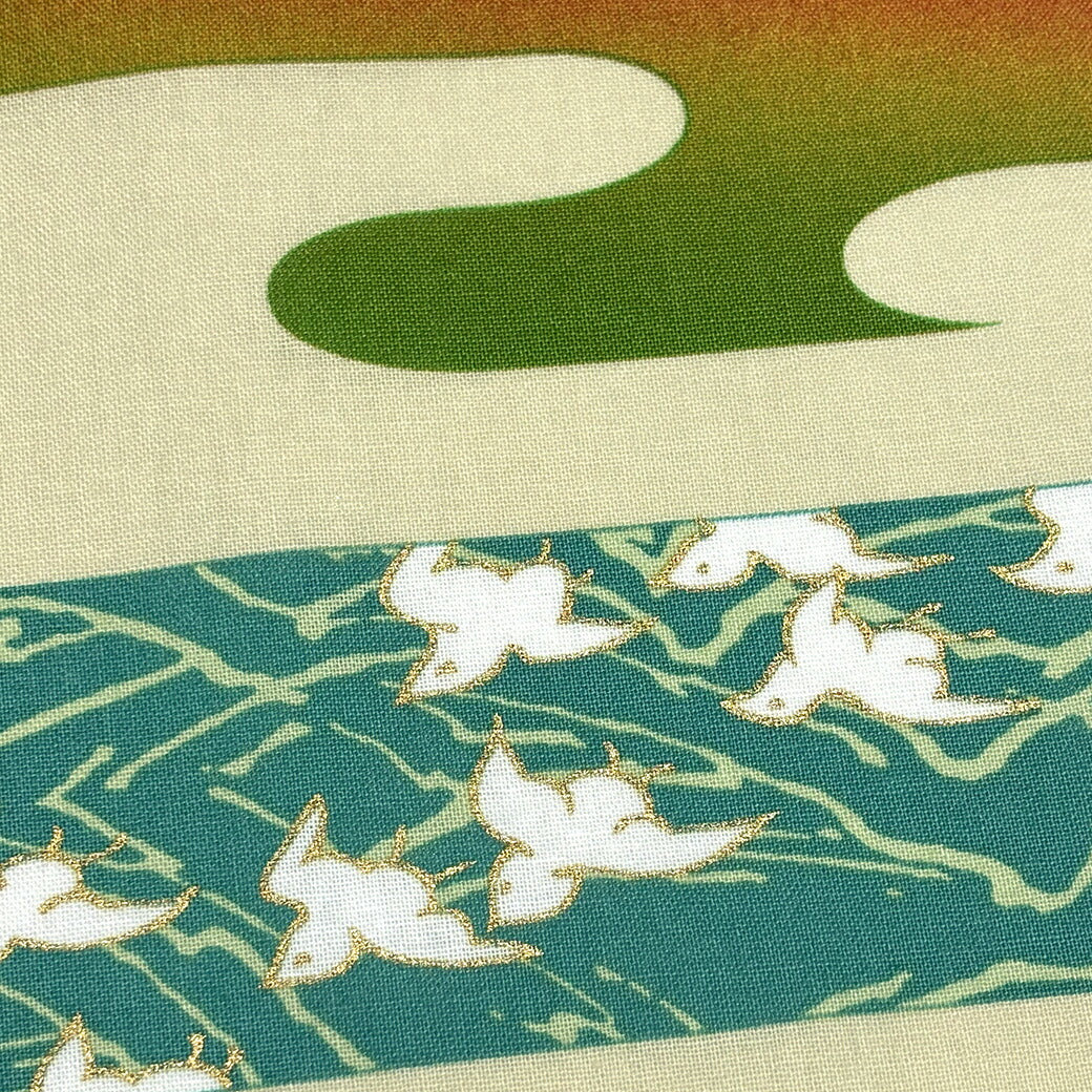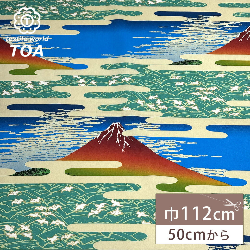 生地 【 和柄 霞富士 -KASUMIFUJI- 若草 】 和柄 浮世絵風 霞富士 赤富士 富士山 シーチング生地 綿生地 コットン 綿100% 日本柄 縁起物 大柄 壁掛け 布地 暖簾 のれん ファブリックパネル インテリア