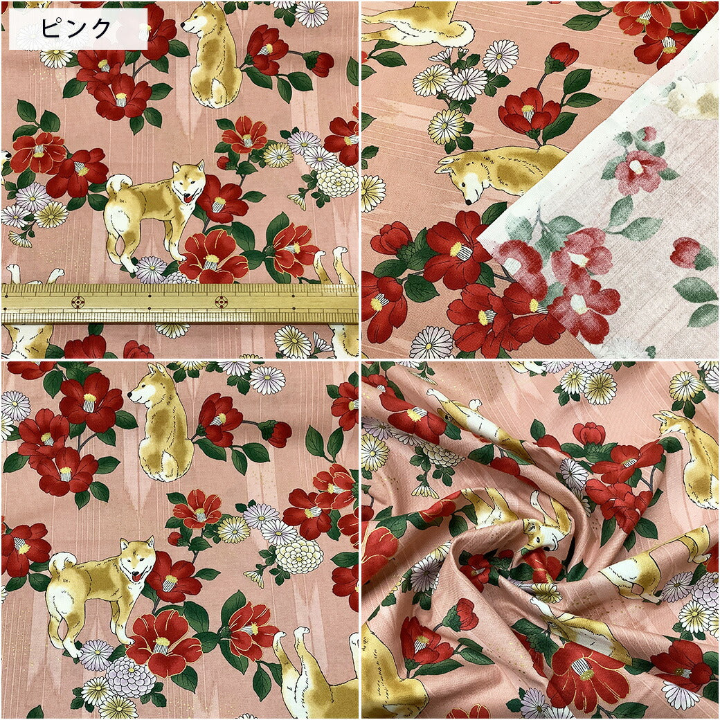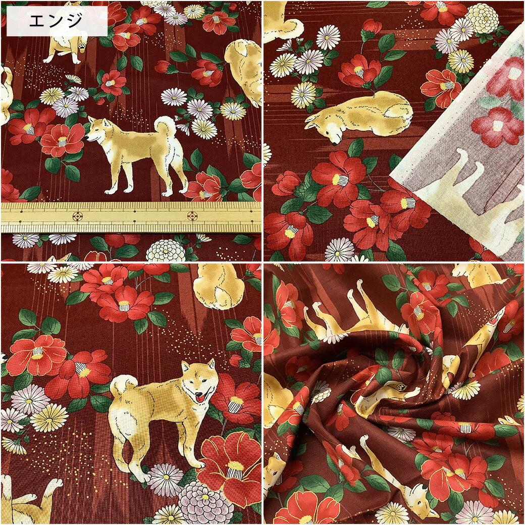 生地 【 シーチング 百華繚蘭 柴犬 3色 】 シーチング生地 しば犬 柴犬柄 椿 シバ犬 犬 いぬ 犬柄 わんこ ハチ hachi 和柄生地 和柄 ハチ公 犬好き 動物柄 和モダン レトロ 和洋折衷 和布 和調 和雑貨 和小