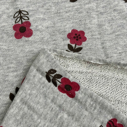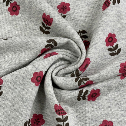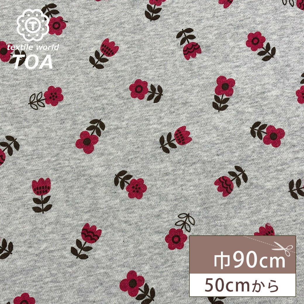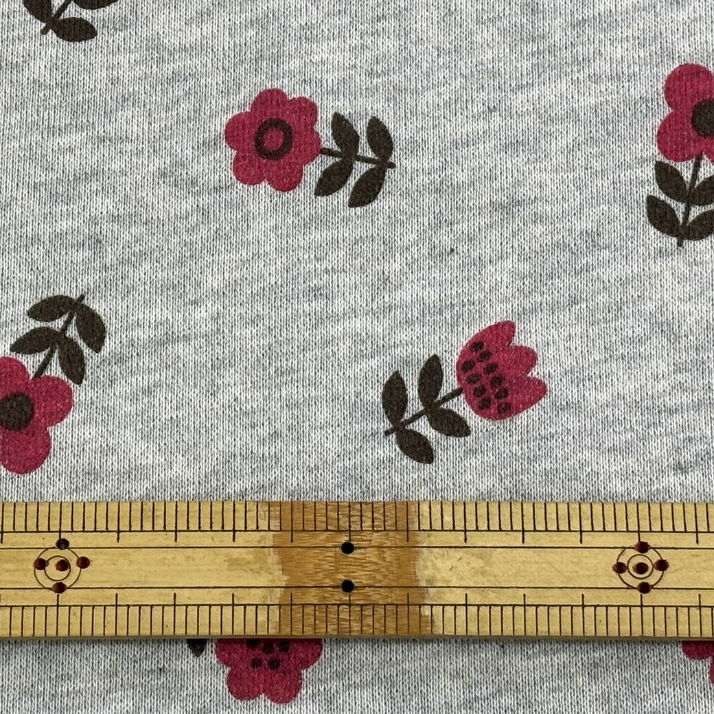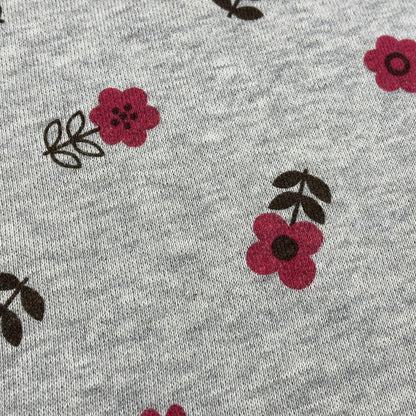 生地 【 花柄裏毛ニット グレーピンク 】 スウェット生地 裏ループ 裏毛 プリント 小花柄 北欧風 春生地 秋生地 冬生地 布地 コットン100% ハンドメイド 手芸 シンプル 定番生地 トレーナー パーカー パンツ セット
