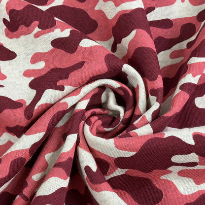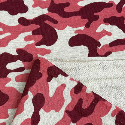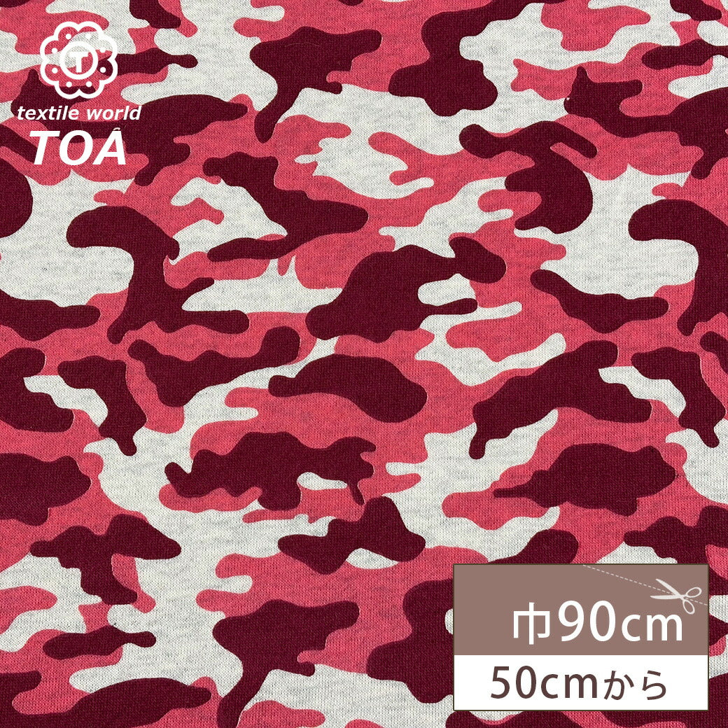 生地 【 迷彩裏毛ニット ピンク 】 スウェット生地 裏ループ 裏毛 プリント 迷彩柄 カモフラージュ 春生地 秋生地 冬生地 布地 コットン100% ハンドメイド 手芸 定番生地 トレーナー パーカー パンツ セットアップ