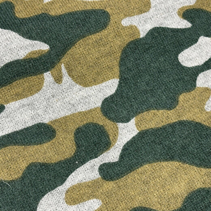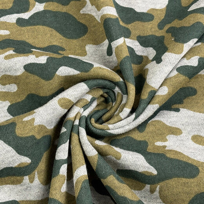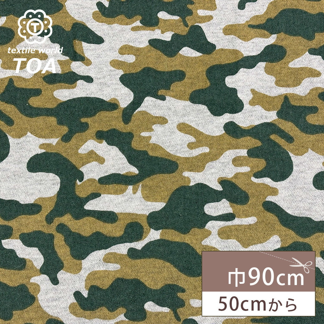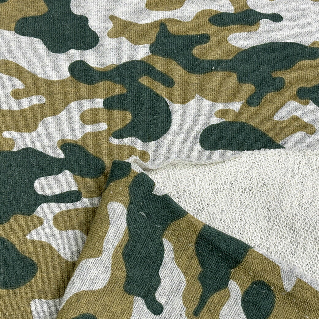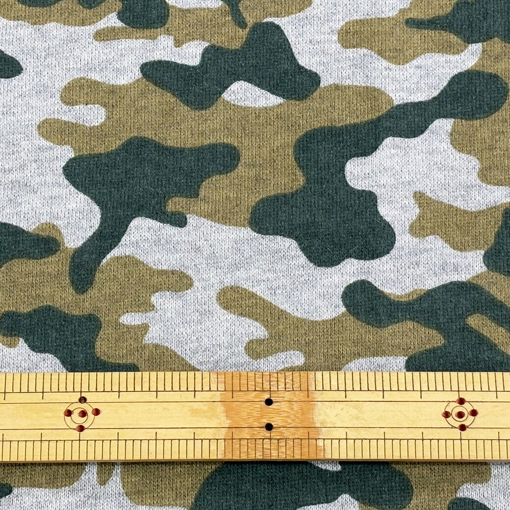 生地 【 迷彩裏毛ニット 深緑カーキ 】 スウェット生地 裏ループ 裏毛 プリント 迷彩柄 カモフラージュ 春生地 秋生地 冬生地 布地 コットン100% ハンドメイド 手芸 定番生地 トレーナー パーカー パンツ セットアッ