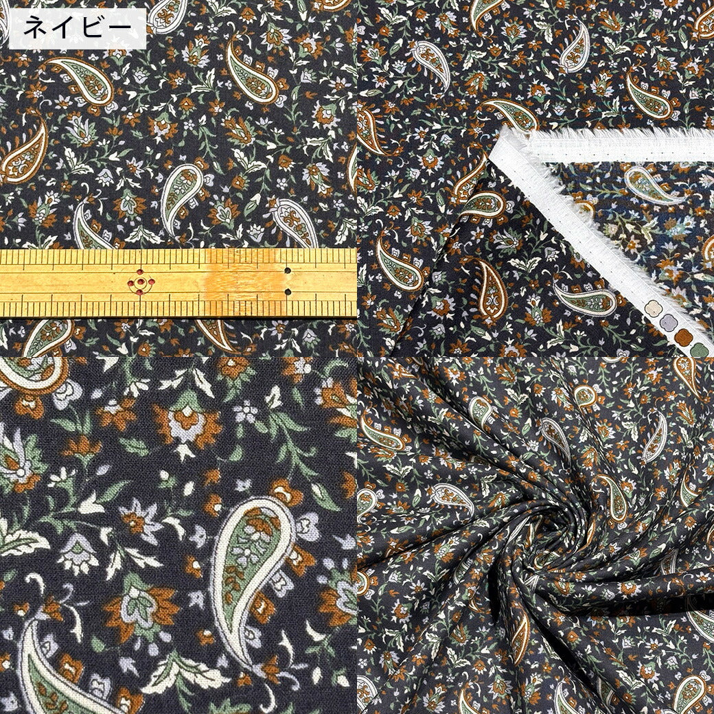 生地 【 60/1ローン フラワーペイズリー 2色 】 ローン生地 綿生地 綿 コットン 綿100% ペイズリー 花柄 植物柄 アンティーク コットンプリント シャツ ブラウス バンダナ ハンカチ カバーリング 裏地 巾着袋 エコバック Textile World TOA