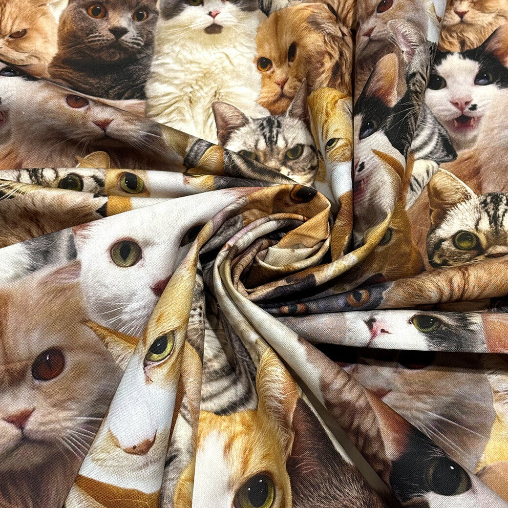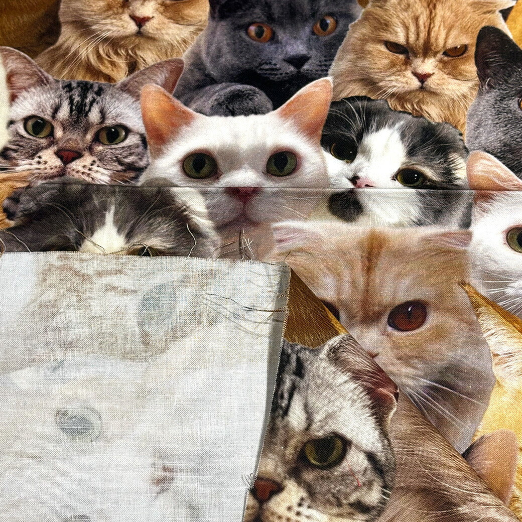 生地 【 インクジェットプリント ネコ 】 シーチング シーチング生地 インクジェットプリント デジタルプリント 猫 リアルキャット 写真 綿100% コットン バッグ ポーチ クッションカバー 風呂敷 タペストリー ディスプ