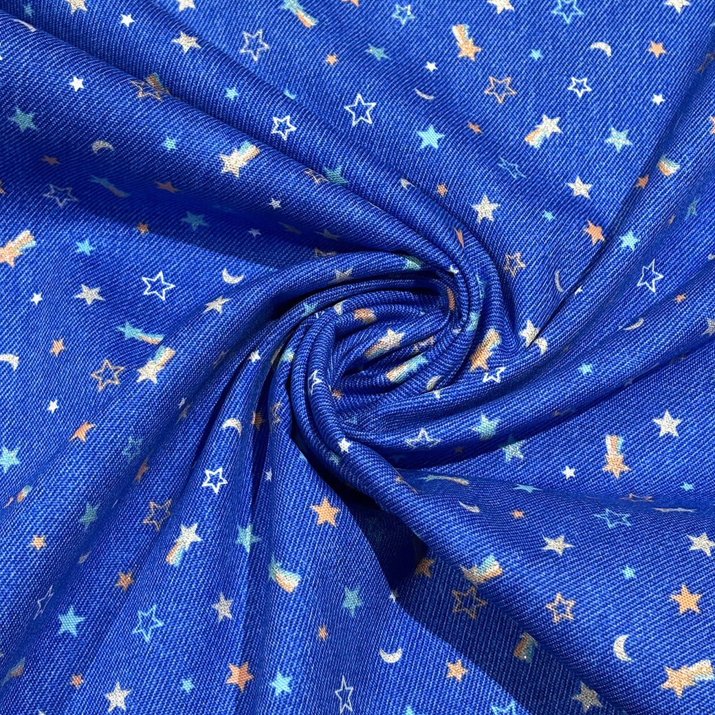 キラリと遊ぶスタープリントデニム調オックス
