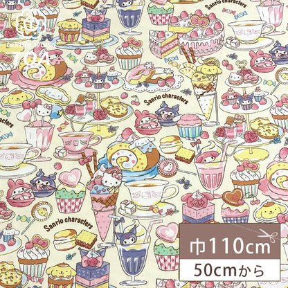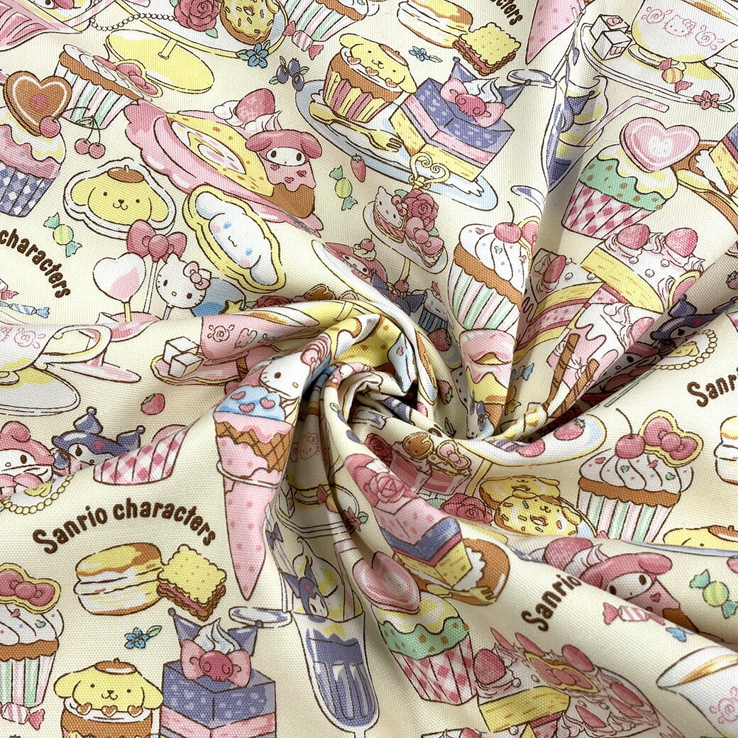 生地 【 サンリオキャラクターズ オックスフォードPT クリーム 】 サンリオ オックス生地 綿生地 コットン キャラクター生地 キャラ生地 オックス生地 総柄 入園 入学 新学期準備 幼稚園 可愛い レッスンバッグ 習い事バ