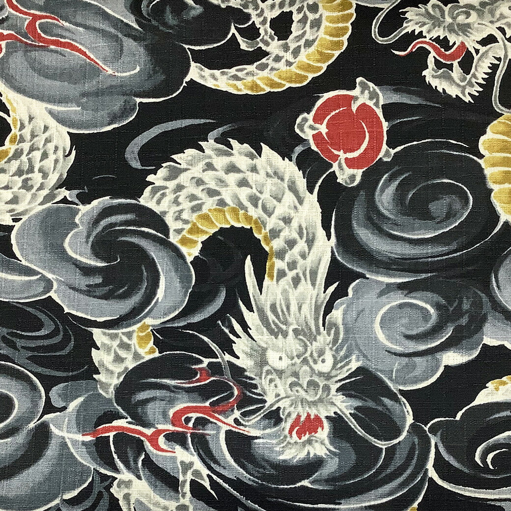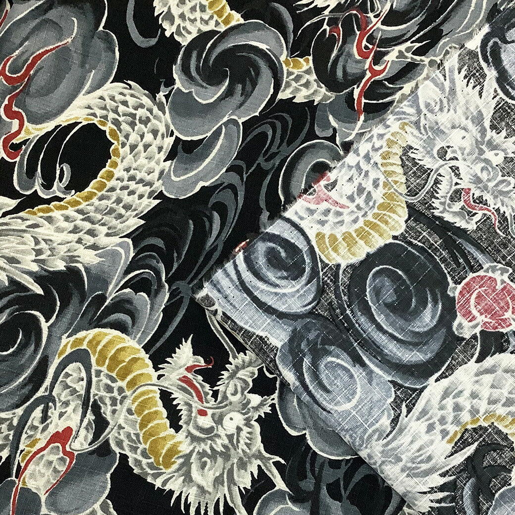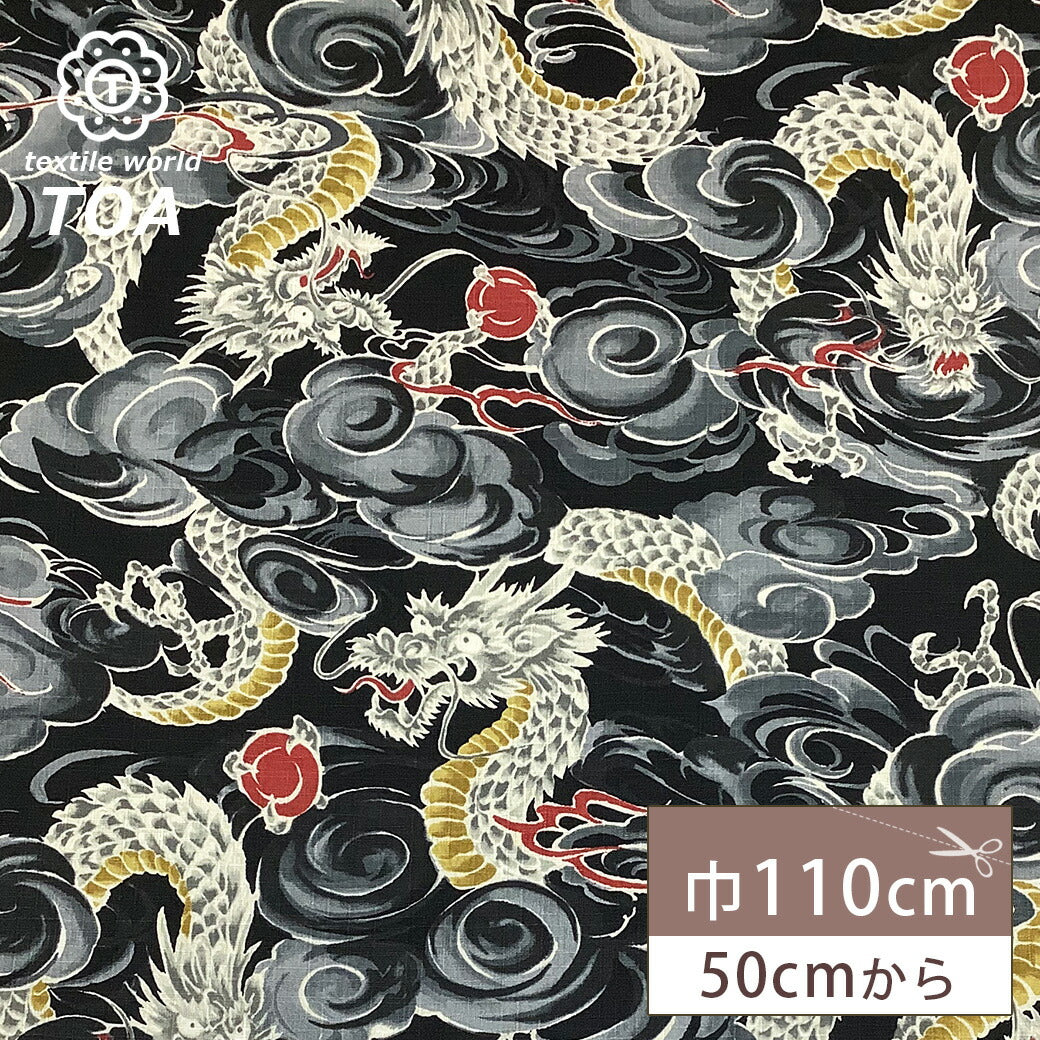 生地 【 龍 dragon ブラック 】 ドラゴン 干支 十二支 総柄 和柄 プリント 動物 アニマル柄 サザンクロス生地 綿生地 綿 コットン 風呂敷 エプロン がま口 バッグ ポーチ 小物 ステテコ 浴衣 甚平 シャツ 暖