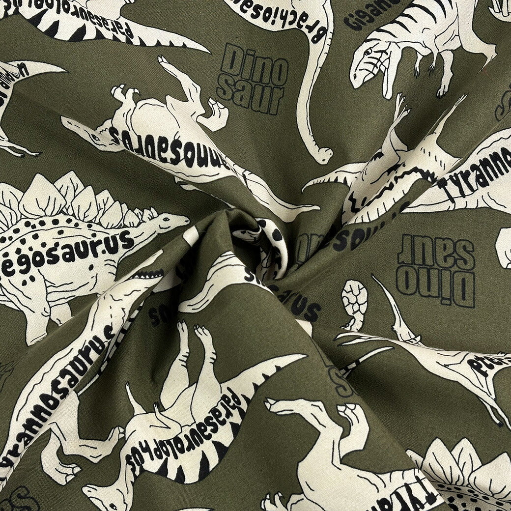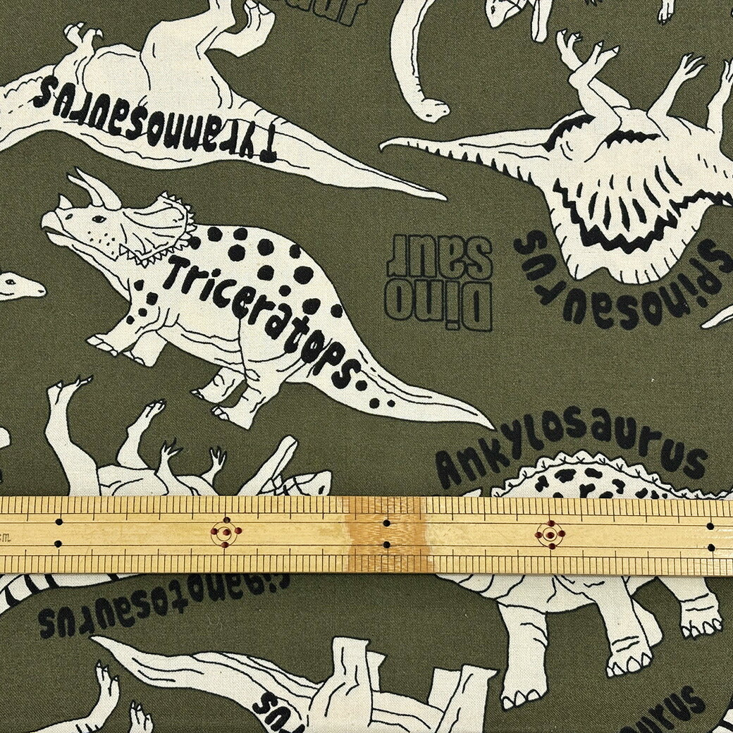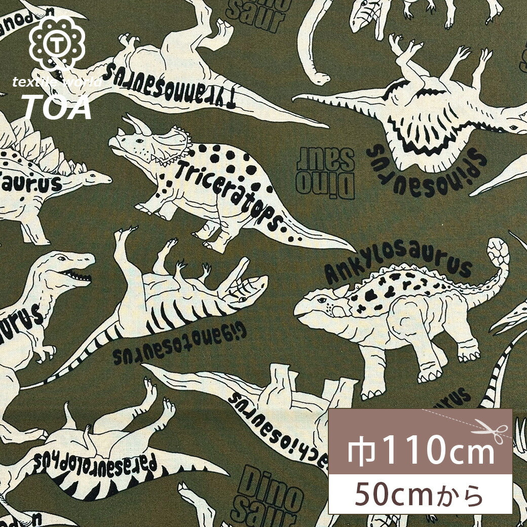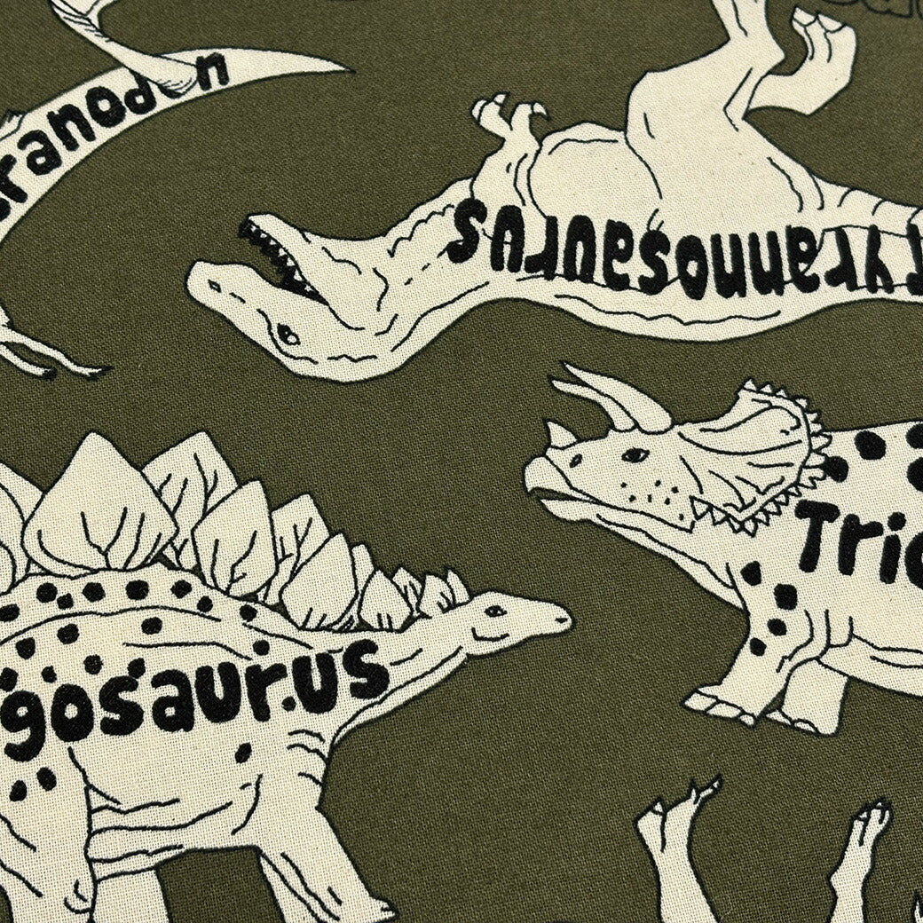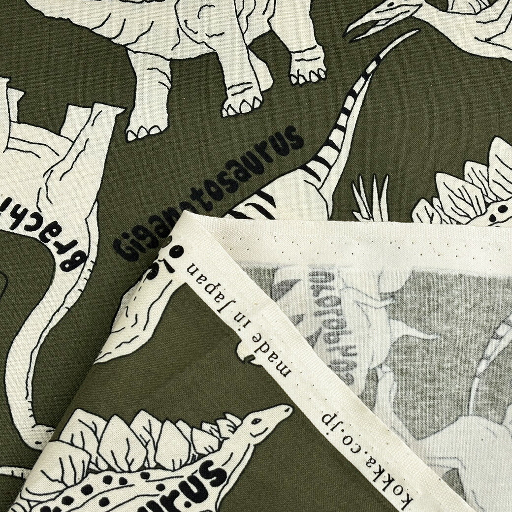 生地 【 MONOTONE SCHOOL カーキ 】 KOKKA シーチング 綿生地 綿プリント コットン 綿100% Museum 恐竜 恐竜柄 ダイナソー トートバッグ エコバッグ ポーチ 巾着 インテリア カバーリング