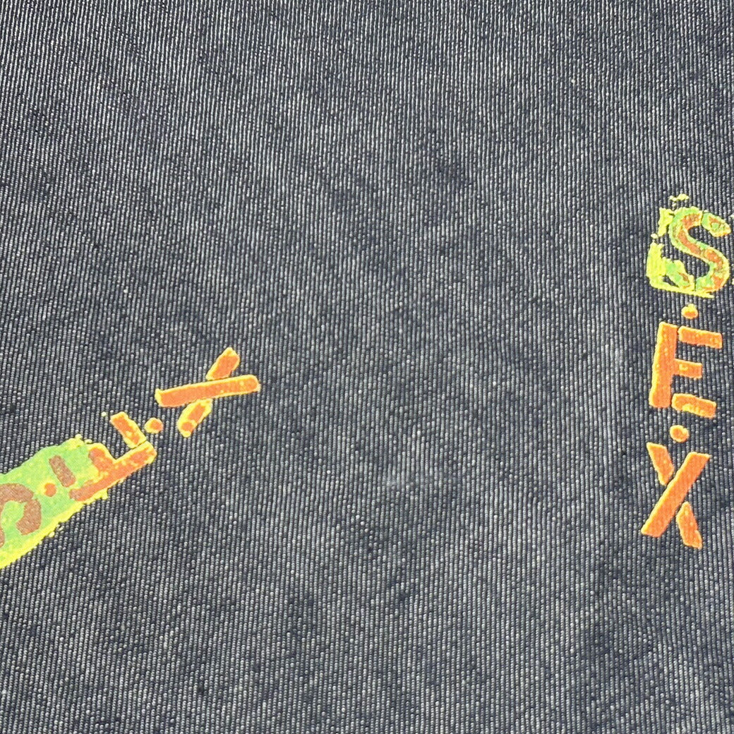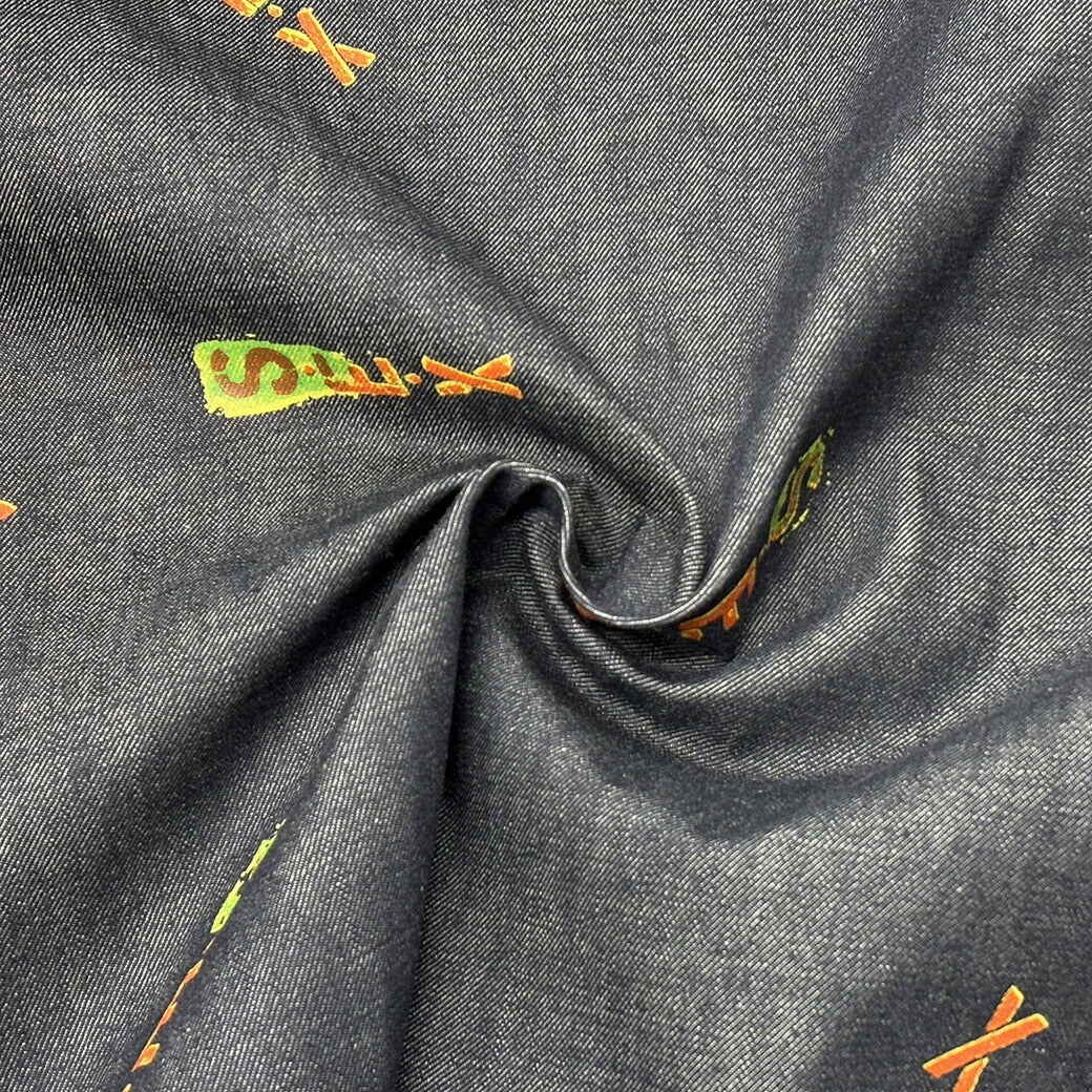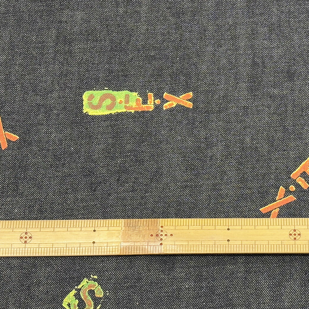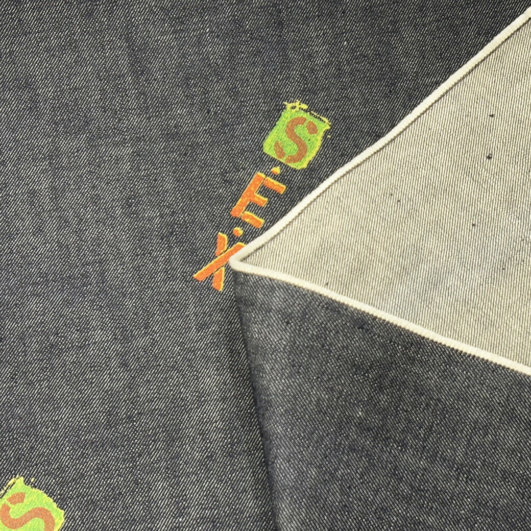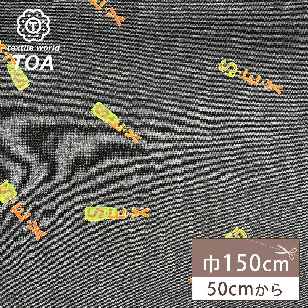 生地 【 SEXデニム ネイビー 】 デニム デニム生地 デニム布地 ダンガリー タンガリー生地 プリント プリントデニム ロゴ アルファベット ヴィンテージ 古着 コットン 綿 綿素材 綿100% ジーンズ シャツ バッグ