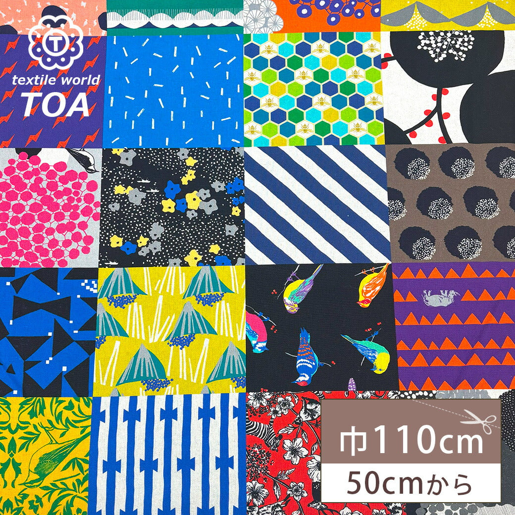 echino(エチノ)20周年を記念し、過去発表されたデザインが集約されたパッチワーク柄の生地です。
