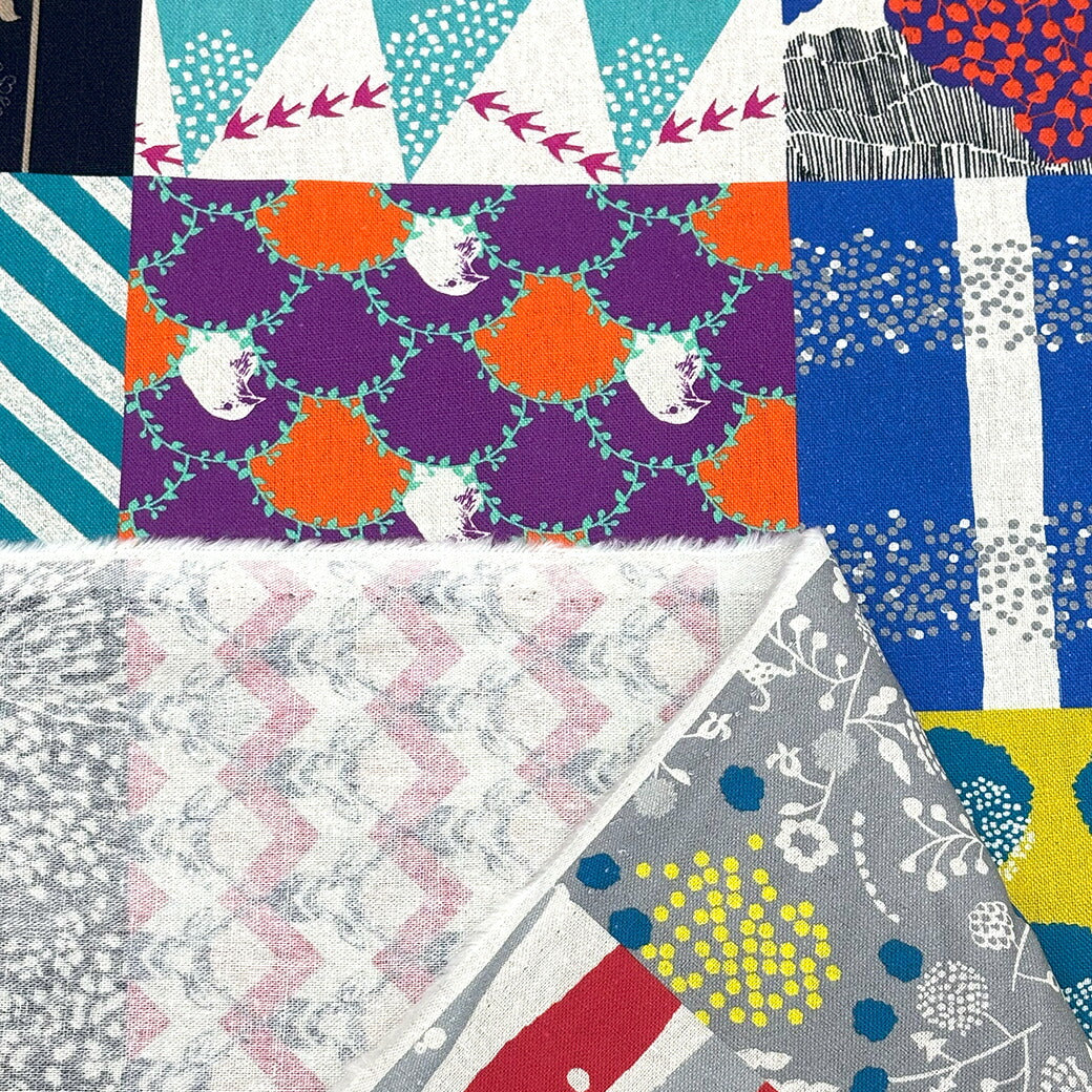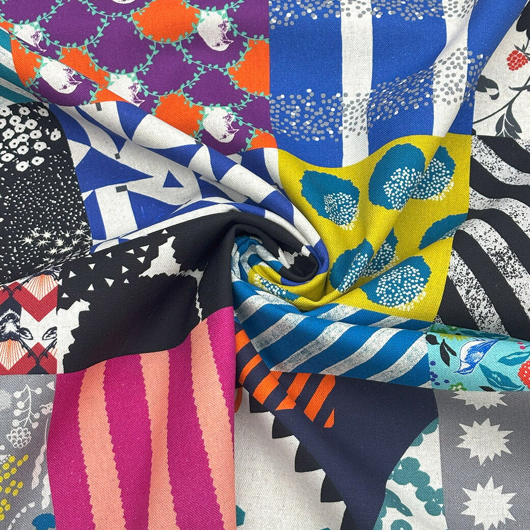 生地 【 echino 20th anniversary 】 KOKKA エチノ エチノ生地 綿麻 綿麻キャンバス コットンリネンキャンバス 110cm巾 20周年記念パネル パッチワーク柄 マルチカラー バッグ エプロン ラ