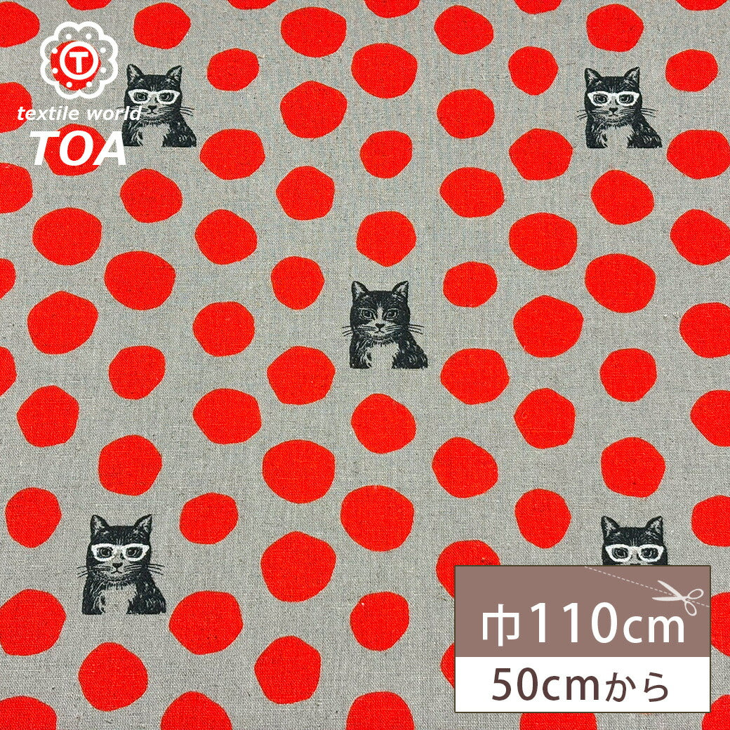 生地 【 echino NekoNoe CAT グレー 】 KOKKA エチノ 綿麻キャンバス 110cm巾 綿80% 麻20%