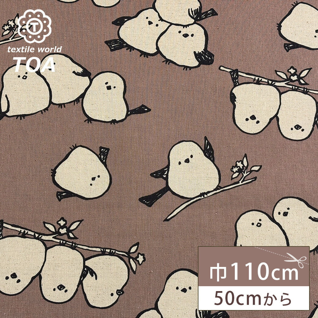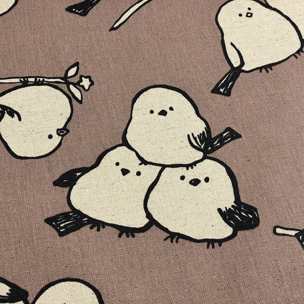 生地 【 Simply animal ピンクブラウン 】 KOKKA 綿麻 綿麻キャンバス コットンリネンキャンバス 110cm巾 シマエナガ しまえなが 小鳥 動物柄 いきもの バッグ 巾着袋 エプロン インテリア 雑貨 入