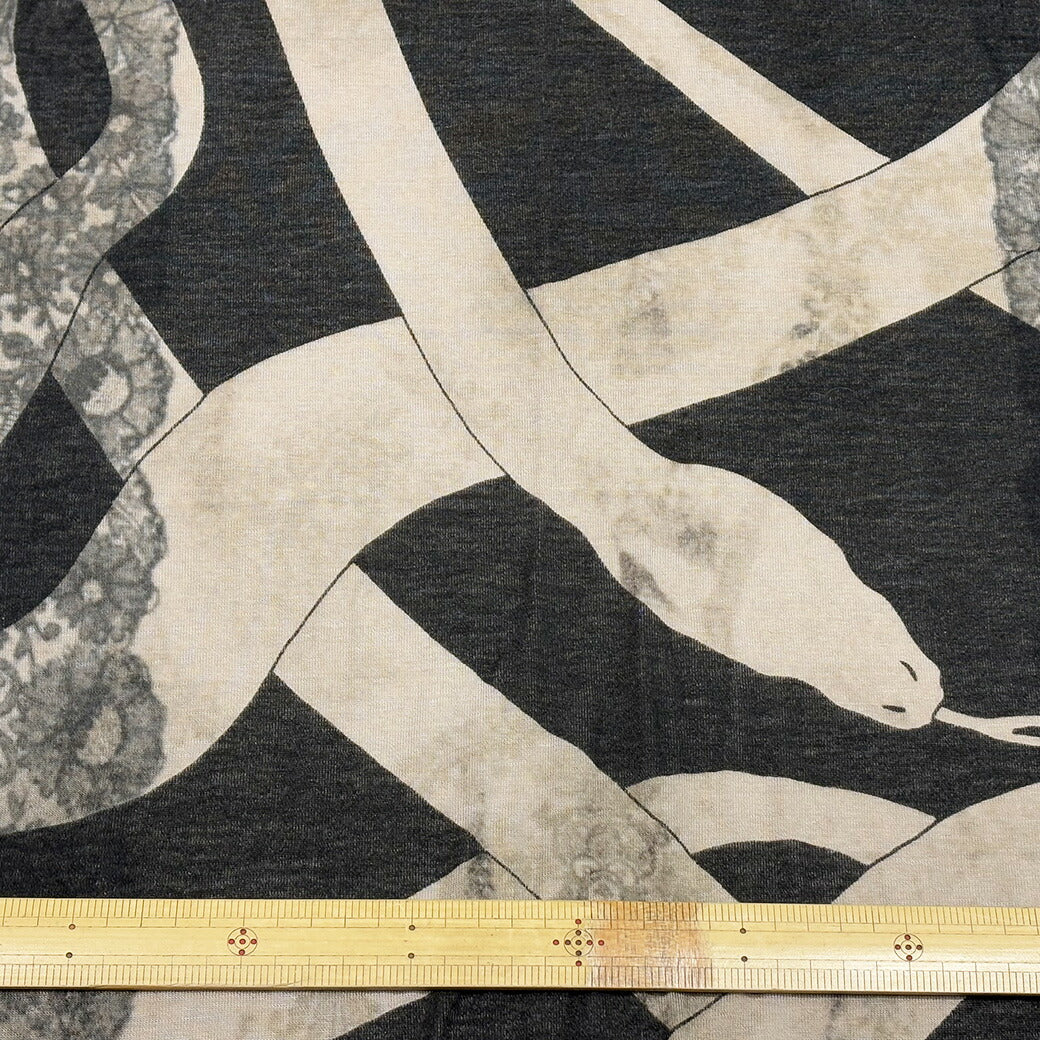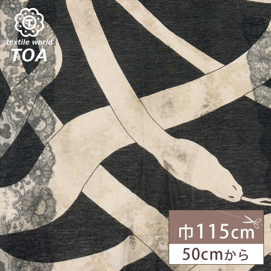 生地 【 ヘビ柄 ニット ブラウン 】 綿 綿混合 ニット ニット生地 蛇柄 蛇プリント 白蛇 和柄 和風 日本風 干支 十二支 伸縮性 Tシャツ パンツ 子ども服 ベビー服 犬服 カットソー トップス シーツ ハンドメイド