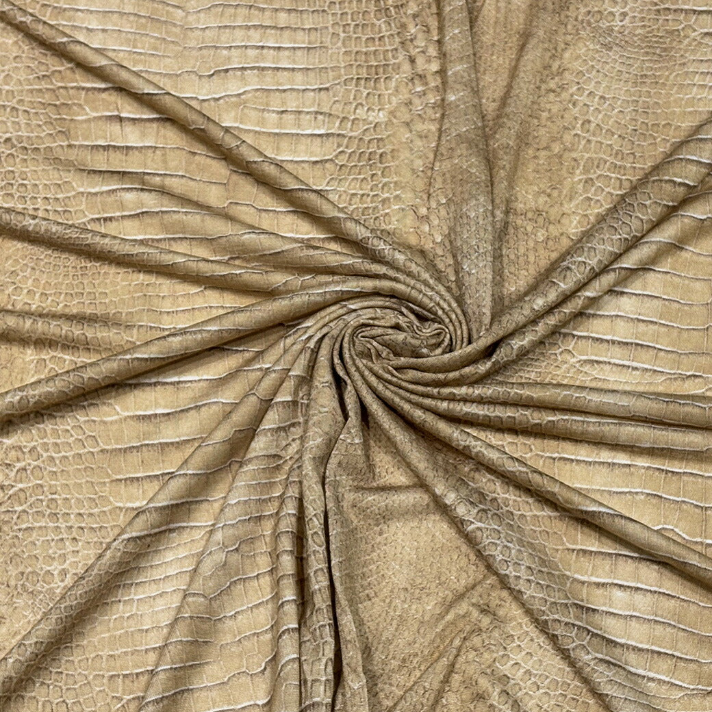 生地 【 ワニ柄 ニット ブラウン 】 綿 綿混合 ニット ニット生地 ワニ柄 クロコダイル クロコ ワニ革 伸縮性 Tシャツ パンツ 子ども服 犬服 カットソー トップス シーツ ハンドメイド 手芸 クッションカバー カバー
