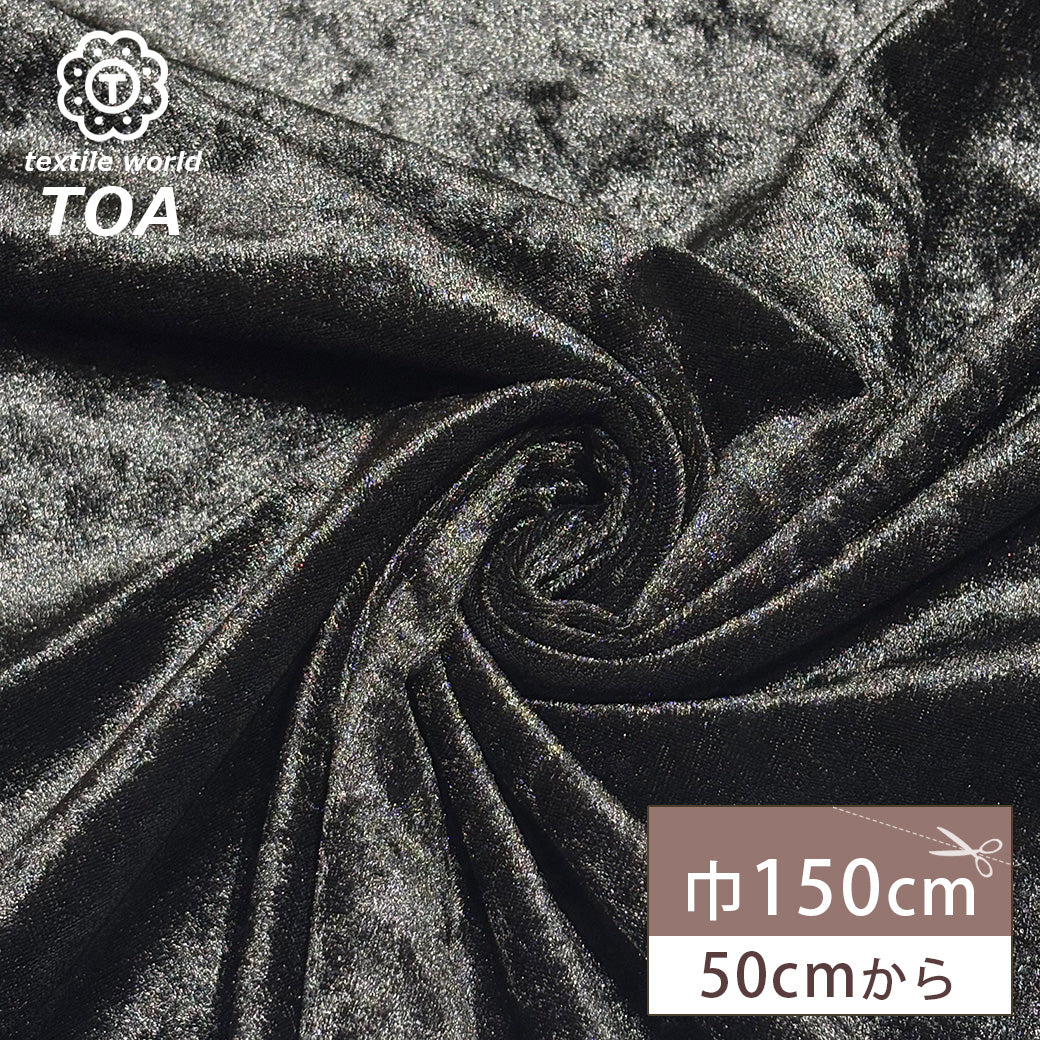 生地 【 クラッシュベロア ブラック 】 ベロア生地 ベルベット 150cm巾 幅広 無地 ポリエステル