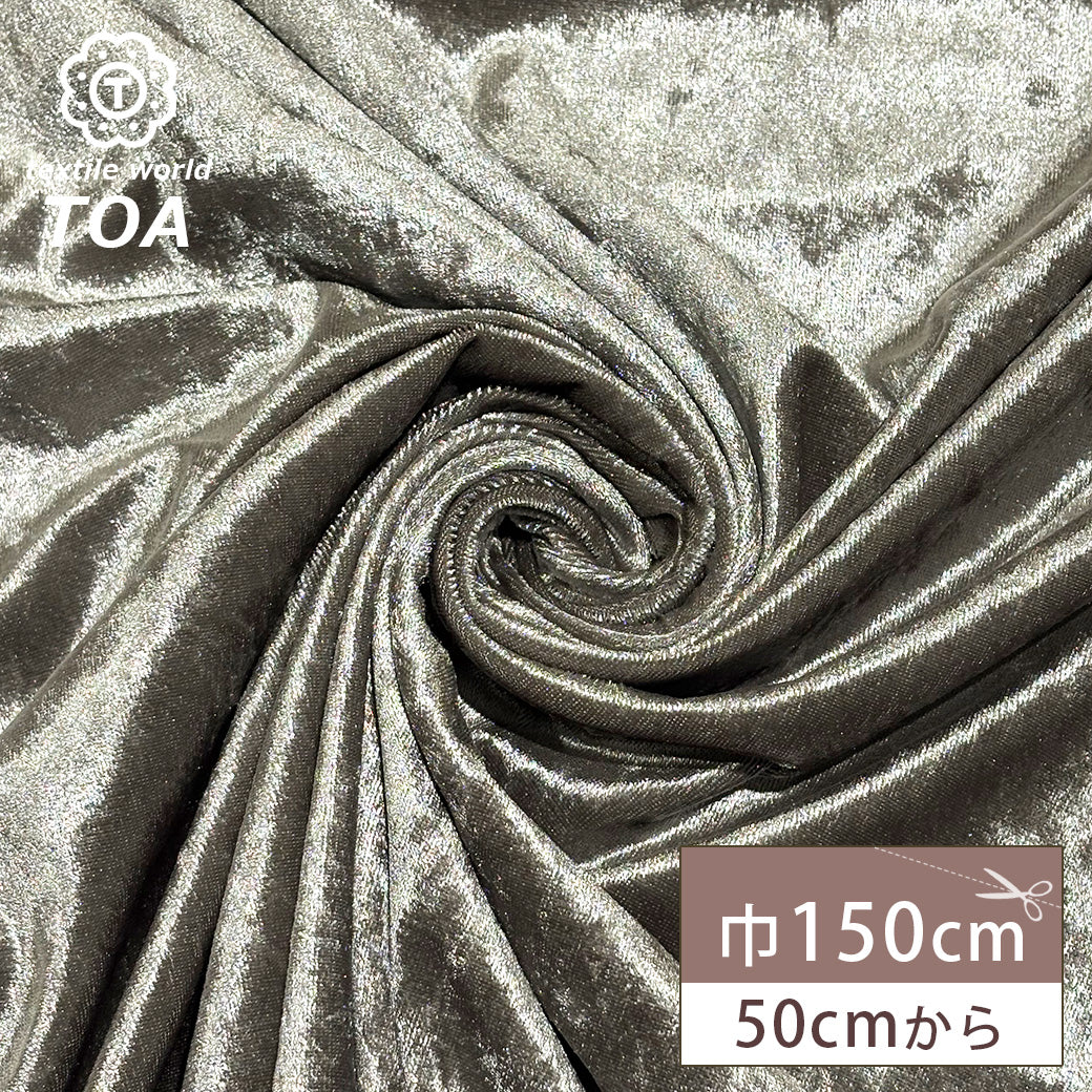 生地 【 クラッシュベロア ライトグレー 】 ベロア生地 ベルベット 150cm巾 幅広 無地 ポリエステル