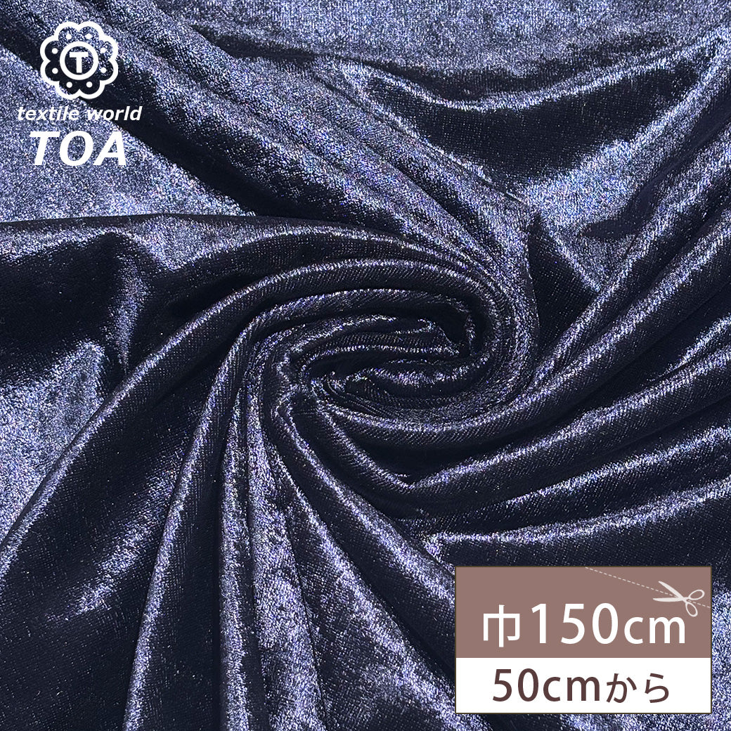 生地 【 クラッシュベロア ネイビー 】 ベロア生地 ベルベット 150cm巾 幅広 無地 ポリエステル