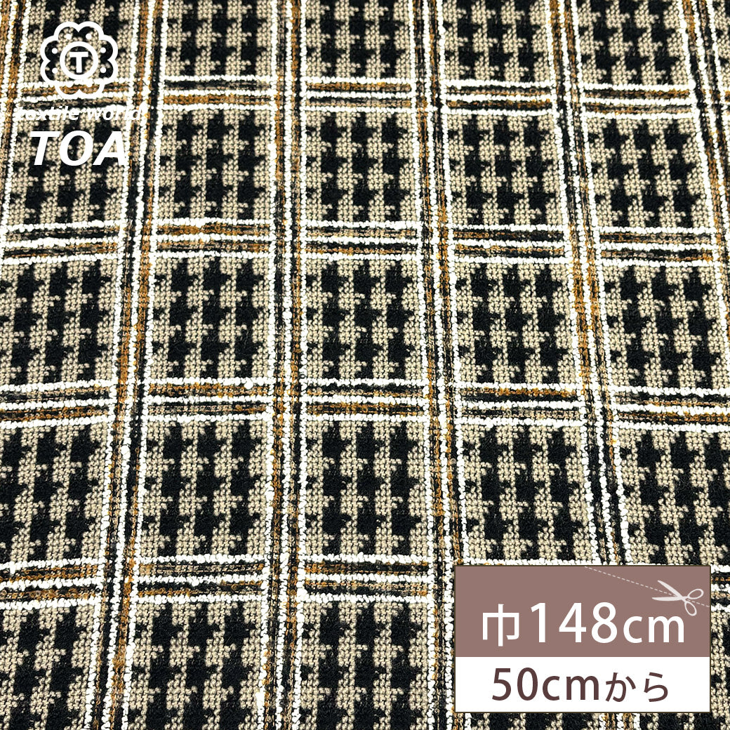 生地 【 千鳥格子ツイード ベージュ 】 ツイード生地 148cm巾 幅広 ウール混 厚手