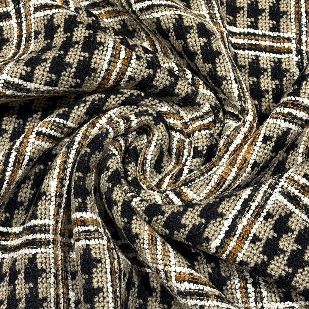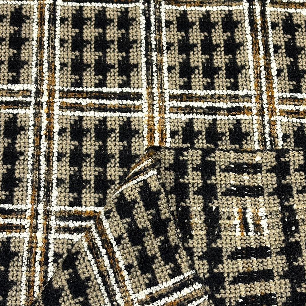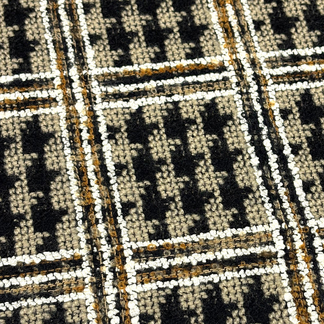 クラシックな千鳥格子柄をツイード織りで表現した、上品で温かみのある生地です。