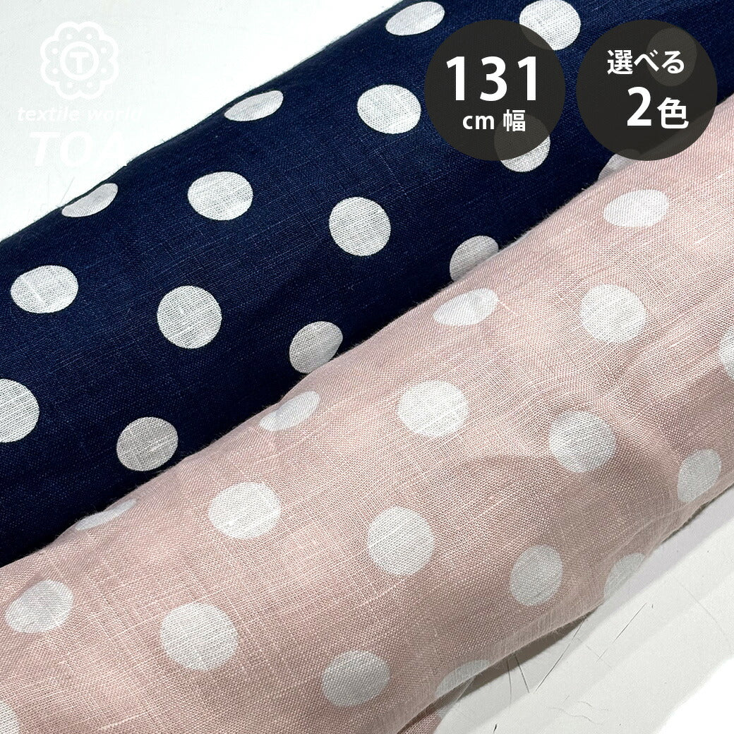 生地 【 リネンドットファブリック 2色 】 リネン生地 麻生地 麻 リネン100% ドット ドット柄 水玉 水玉柄 ドット生地 ドットプリント 北欧風 北欧調 ブラウス シャツ スカート 子ども服 おしゃれ かわいい カーテン ポーチ インテリア キッチン小物 Textile World TOA