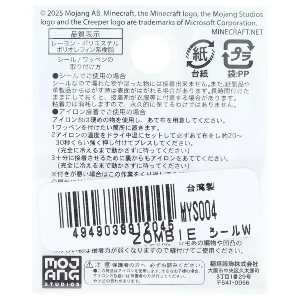 ワッペン【 MINECRAFT ワッペンシール ZOMBIEアイコン MYS004 】 シール・アイロン接着両用タイプ マインクラフト マイクラ キャラクター ステーショナリー スマートフォン バッグ ハンカチ ワンポイント 衣服