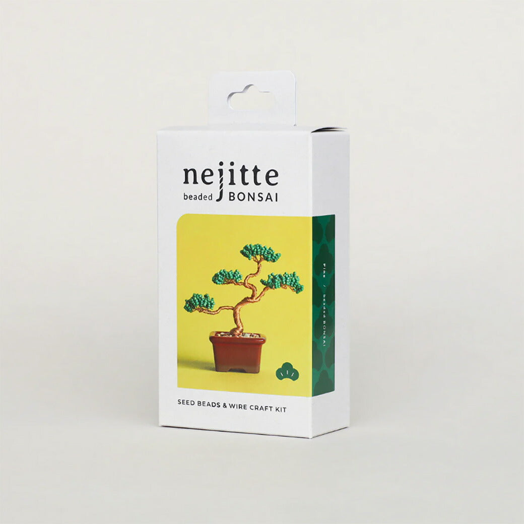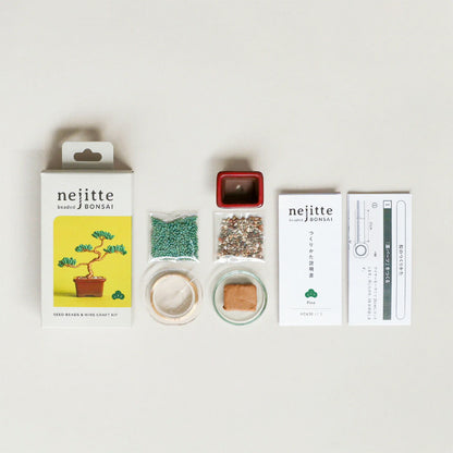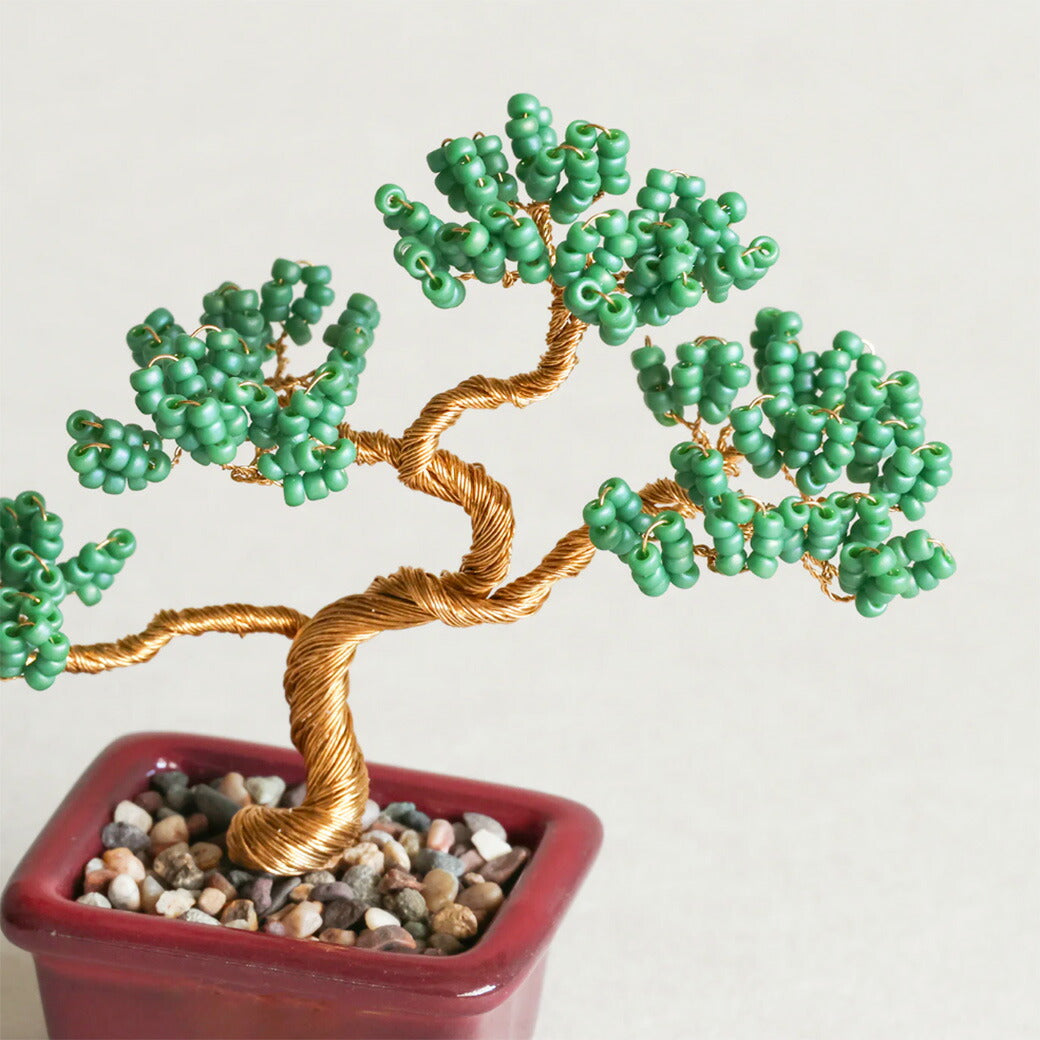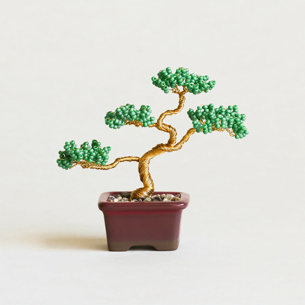 ビーズを通したワイヤーをねじって、小さな盆栽をつくるキット。