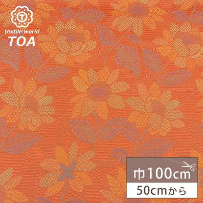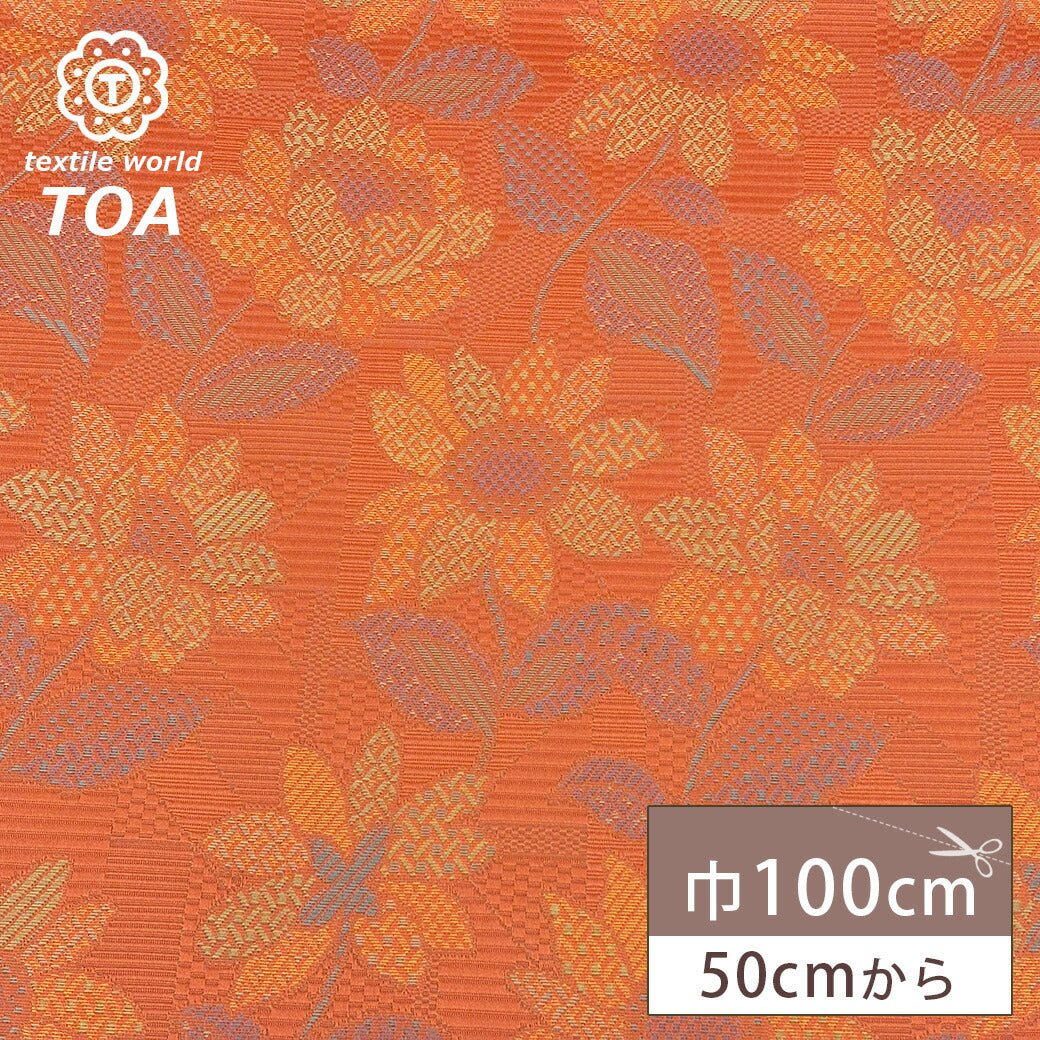 生地【 ひまわりジャガード 濃オレンジ 】ジャガード生地 ジャガード織り ゴブラン 織物 花柄 高級感 上品 布地 衣装 インテリア ハンドメイド 手芸 上品 クッションカバー スカート ポーチ 小物 テーブルクロス ディスプ