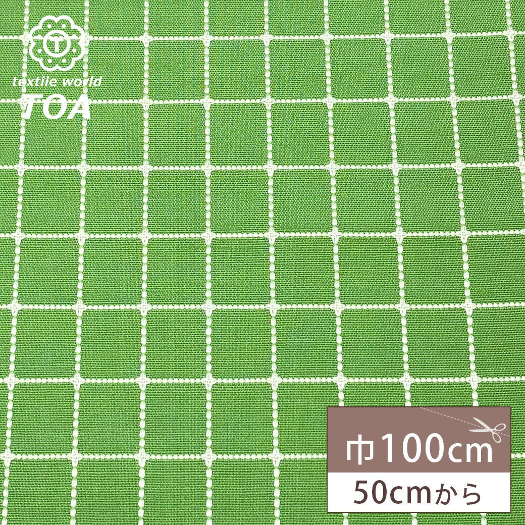 生地 【 エモシオンジャガード キミドリ 】 ジャガード生地 格子柄 チェック 100cm巾 ポリエステル ジャケット スカート パンツ ワンピース バッグ ポーチ インテリア 雑貨 クッションカバー ランチョンマット 可愛い お